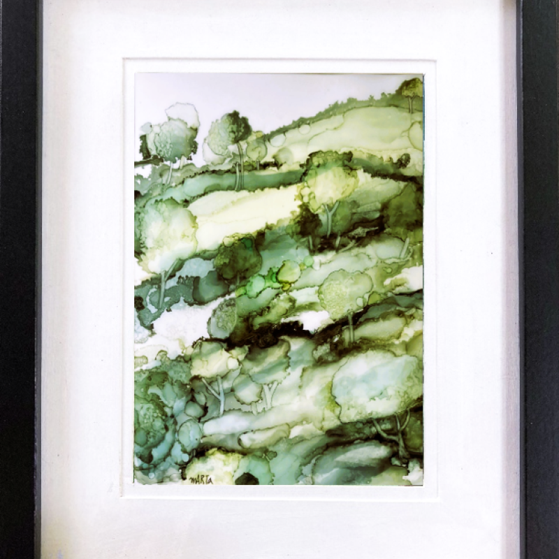 This artwork has been finished with layers of professional grade archival varnish for extra protection, colour enhancement and a beautiful smooth finish. The metallic paint used reflects the shifting light beautifully really bringing the painting to life.