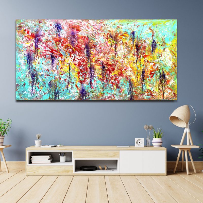 It is acrylic on stretched canvas and comes framed in natural timber.
