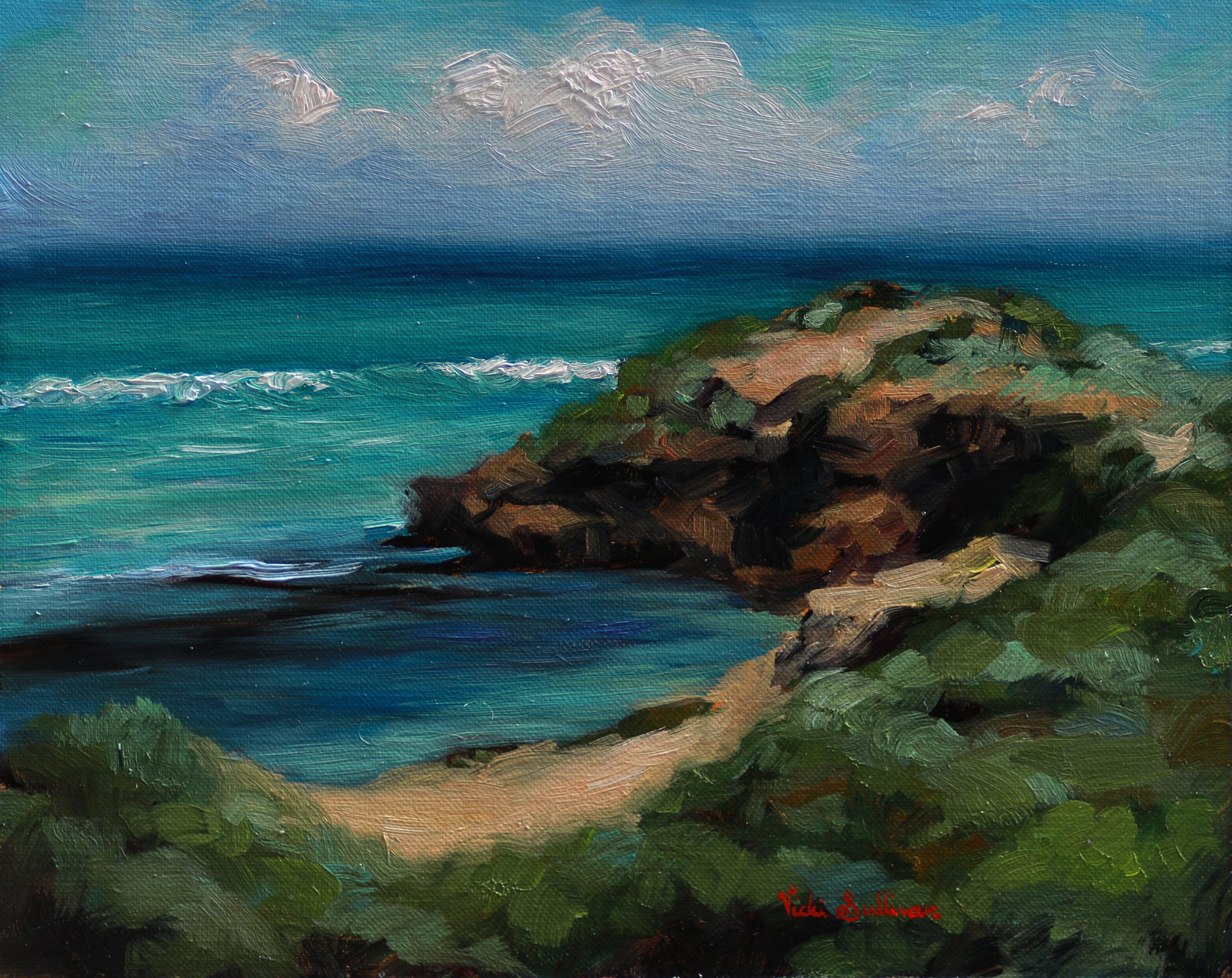 Pearces Beach, Blairgowrie , Plein Air painting by Vicki Sullivan – I love the way nature is always changing in the light. This painting was painted plein air, on site in Blairgowrie on the Mornington Peninsula .