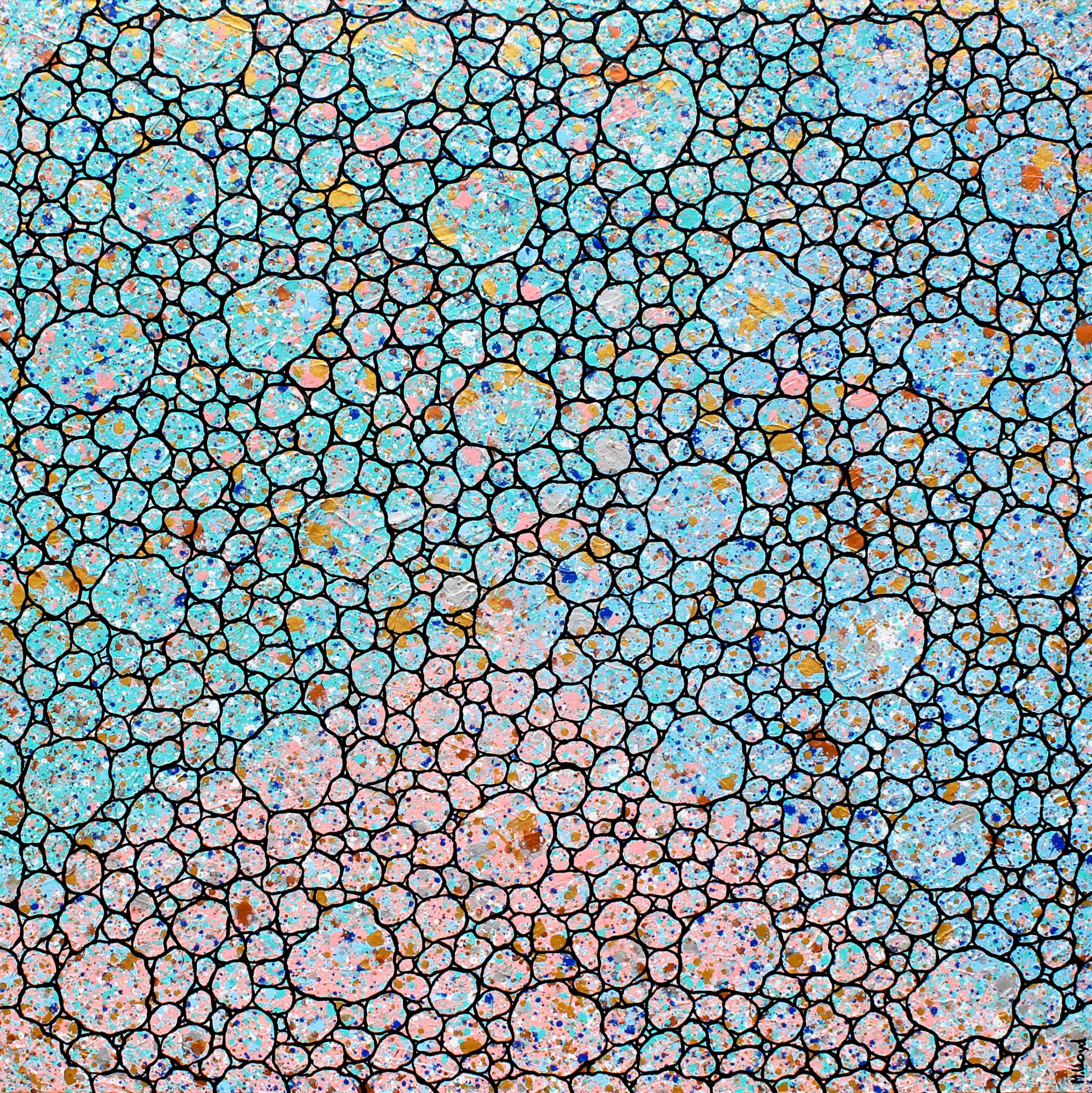This is a NEW version of my pebbles with a tri colour gradient from greeny blues, blue to soft pink. Ive also introduced metallic copper with golds and silver . The original versions of my Pebbles was inspired by wanting to paint something tranquil and calm as now being in a world pandemic we are surrounded by so much negative news and worry. I also wanted to paint something that was therapeutic for myself as a lot of my usual art subjects require a bit of math and measurement. This was a free flowing painting, finding my zen. It reflects pebbles in water which again is very calm and soothing. Look great on a white or dark feature wall. Would also hang well with the new Gum Leaves painting too.