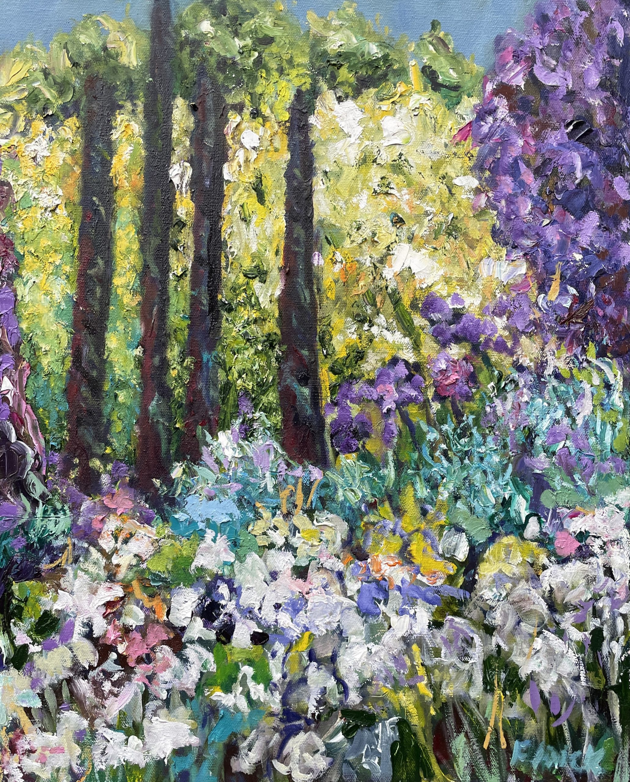 The inspiration for my painting of pencil pines and agapanthas was my love beautiful gardens