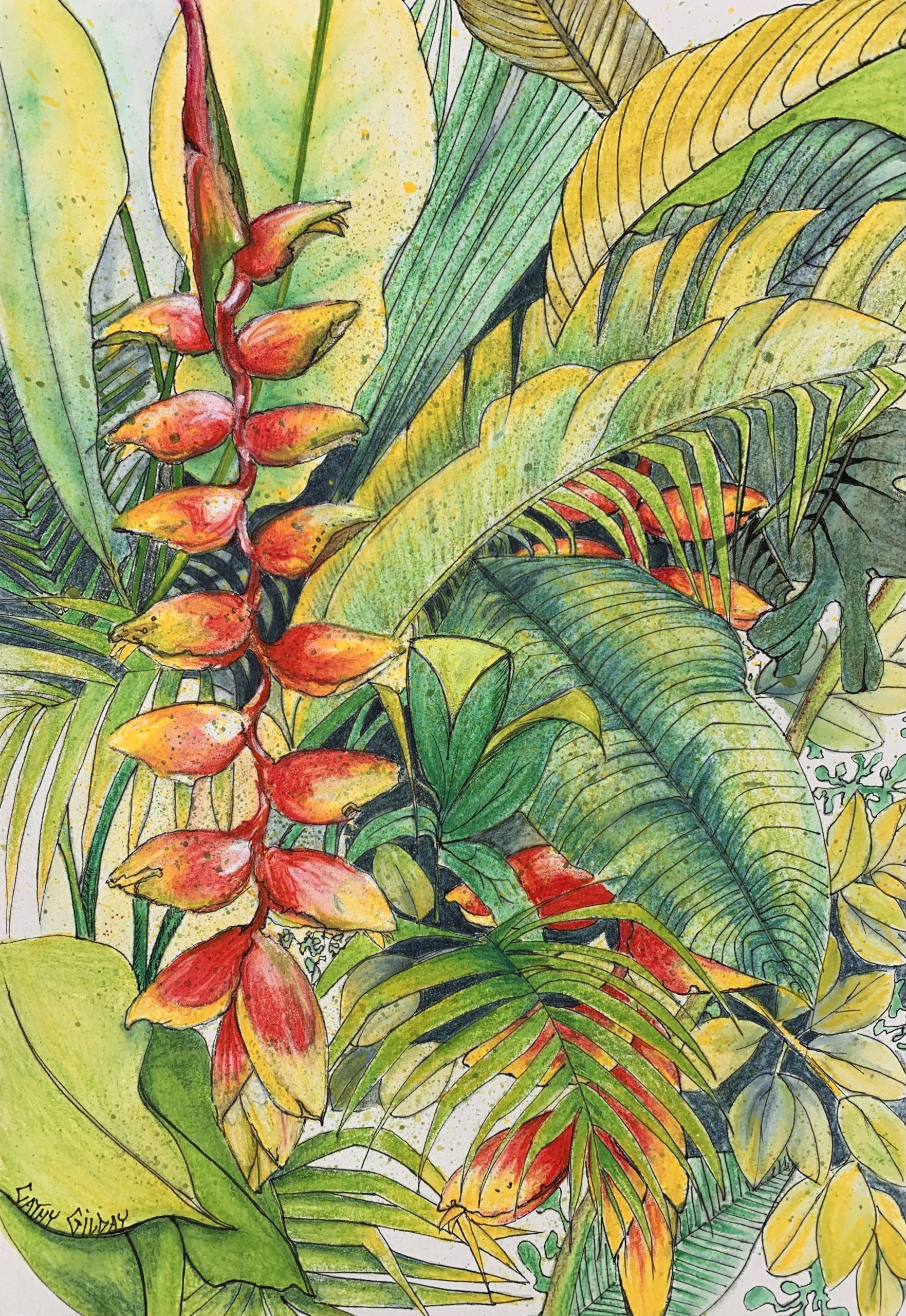 Watercolour pencils & coloured ink and micron archival fine ink liners on 190gsm watercolour paper,