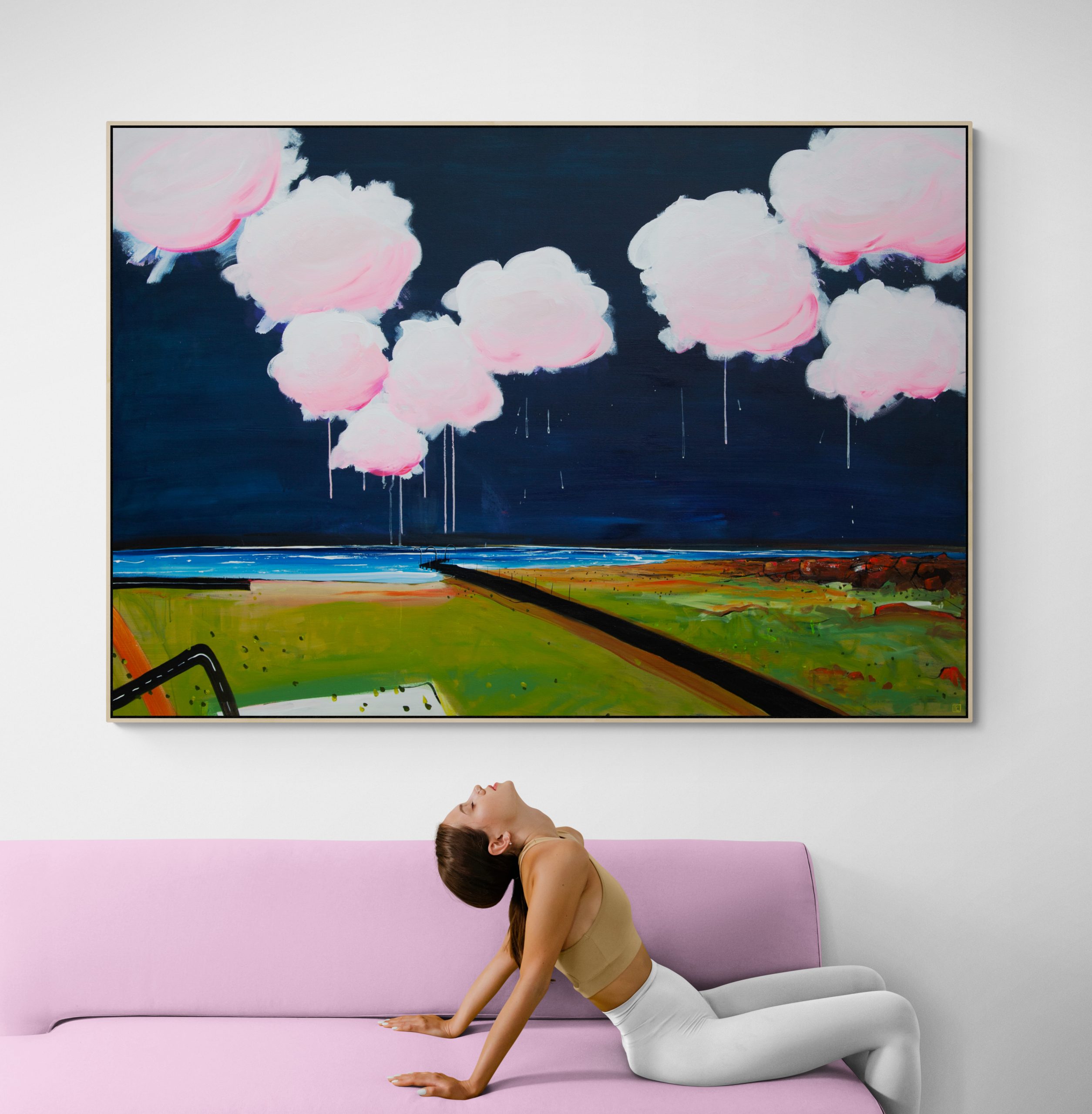 People Smile Here by Tania Chanter is inspired by the beautiful Australian landscape and the changes of light and mood throughout the day. Tania’s hope is that this painting brings a sense of calm to the room where it lives, and that is makes the people who enter the room feel as though a part of nature is right there with them.