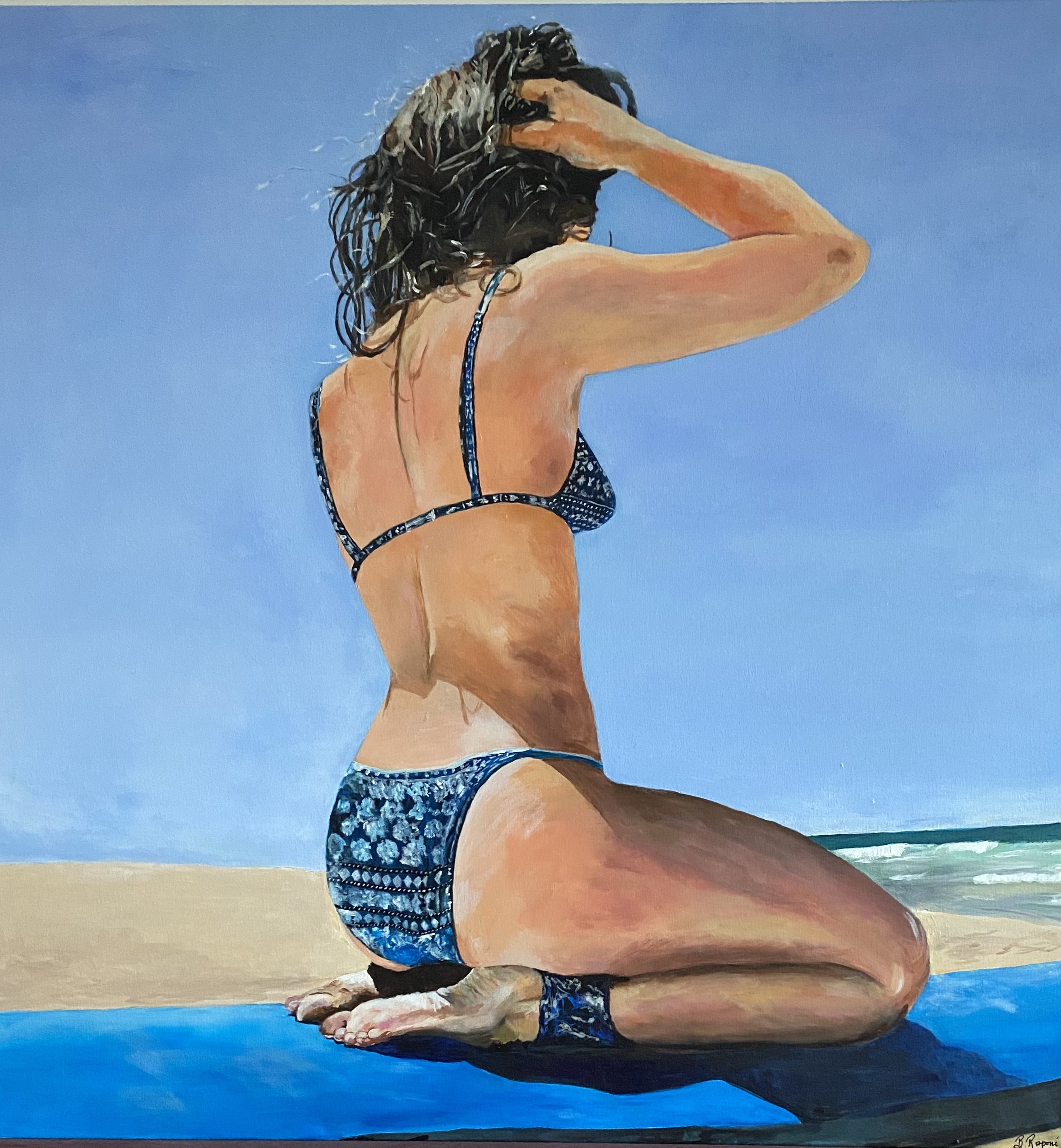 Perfect Day is an original contemporary painting of girl at a popular beach on the Sunshine Coast, Queensland.