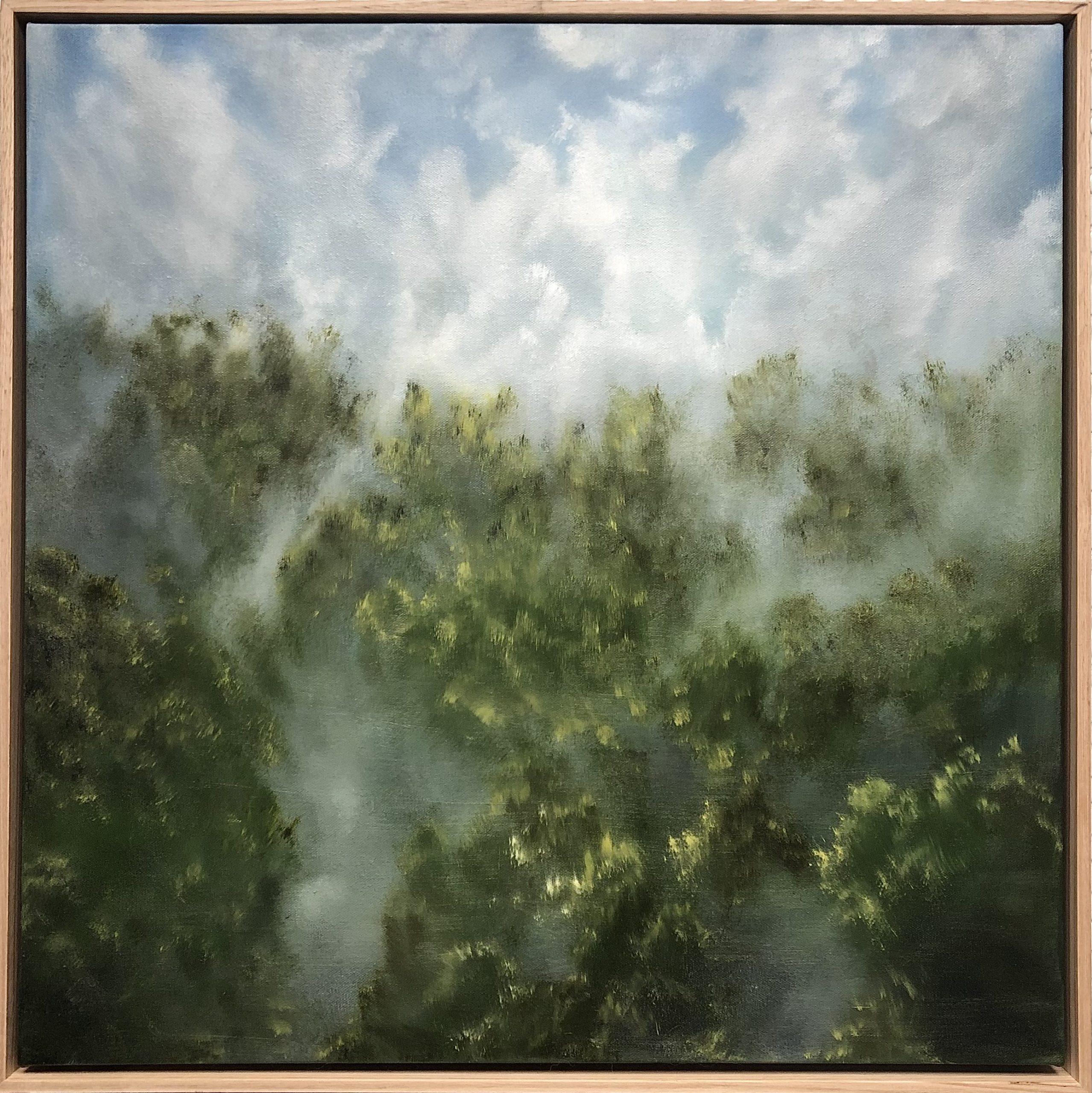 Ready to hang, original oil painting on stretched canvas with Tassie Oak floating frame.