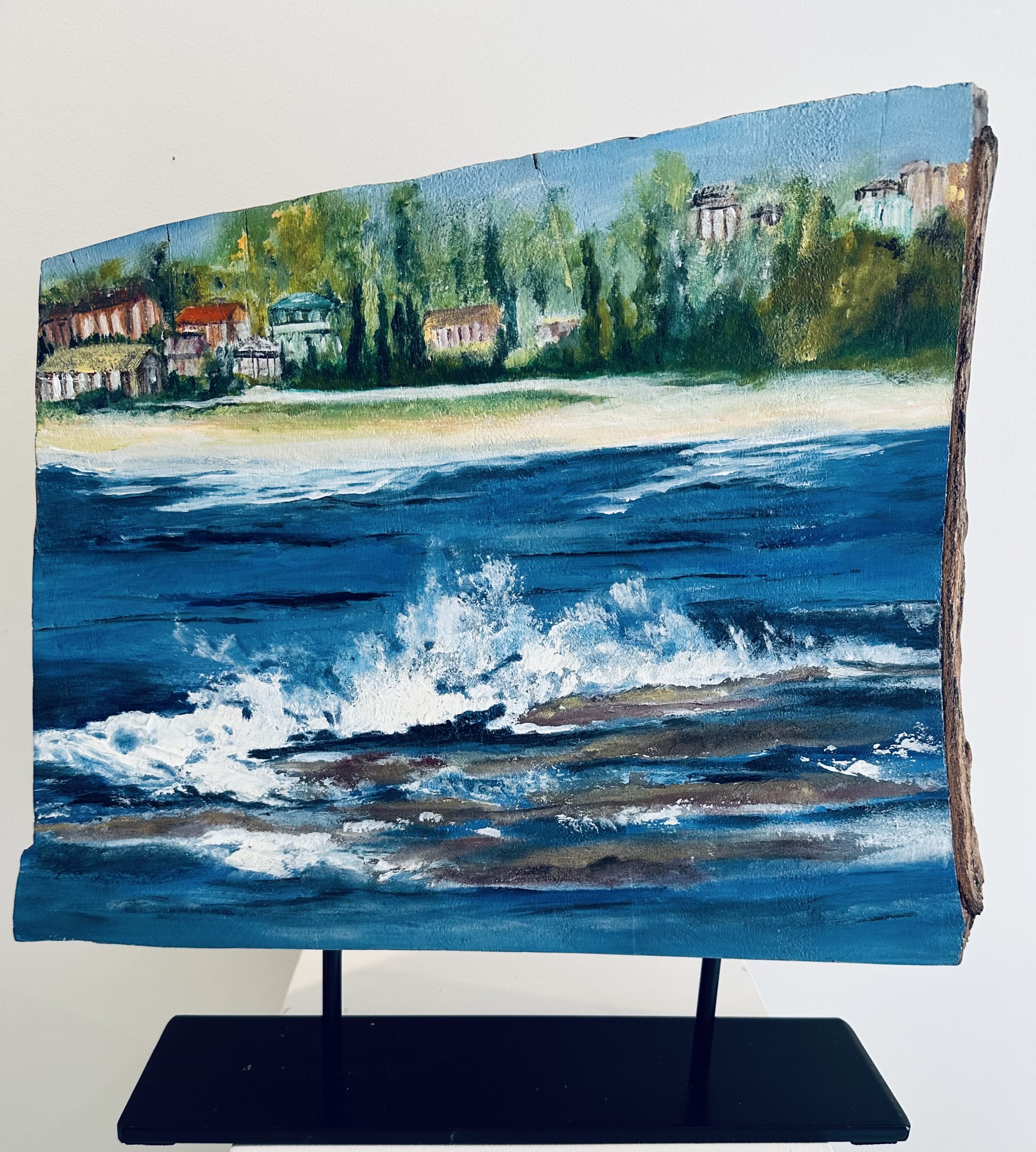 This piece is painted on organic timber and natural grains including imperfections is to be expected