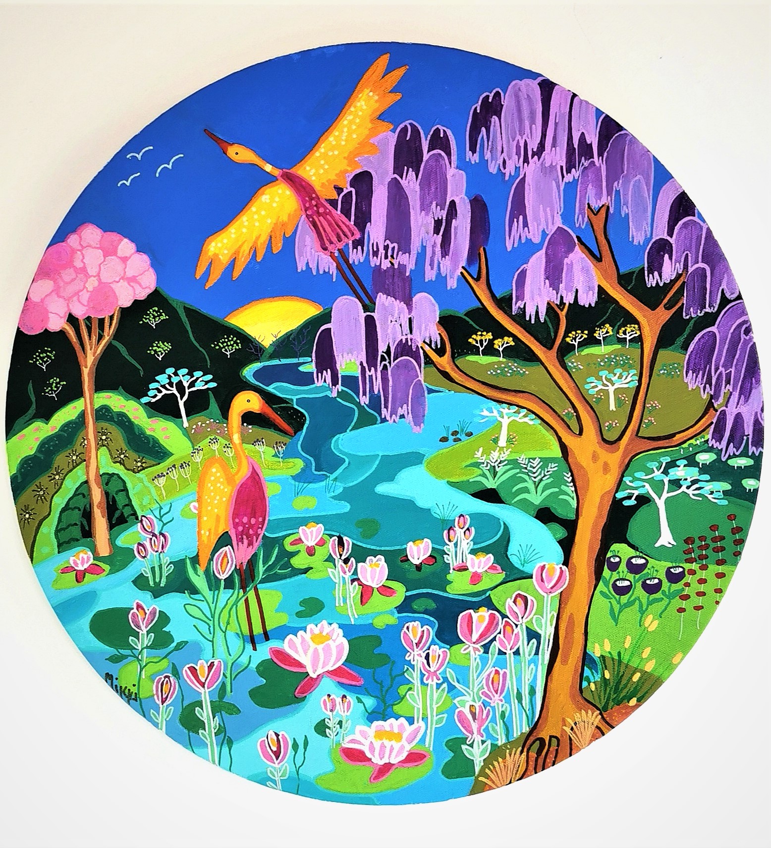 This artwork is on a round stretched canvas 50cm in diameter and 20mm deep.