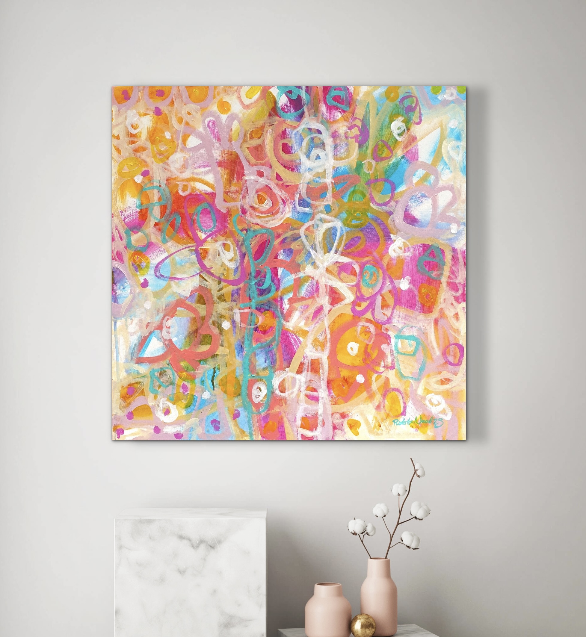 This work is acrylic on 61 X 61 cm on Premium Professional Canvas, stretched onto a kiln dried frame, wired ready to hang, signed on the front and sent with an artist cv and certificate of authenticity.