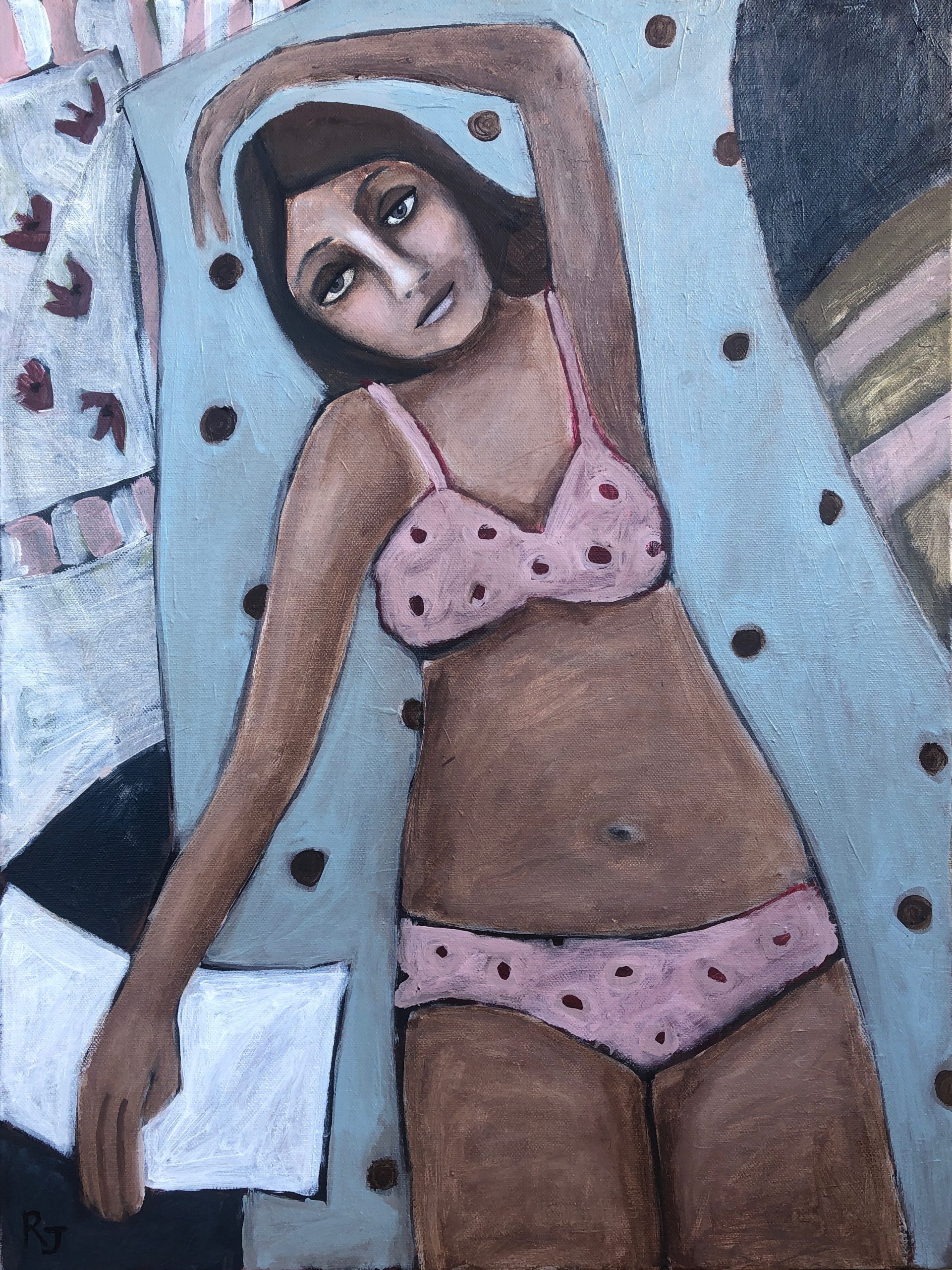 I hope that my art captures something true about the world — the beauty of the ordinary, the complexity of human interaction, the intensity of an emotion. My art is largely figurative and I attempt to represent what I see and experience with a sense of appreciation and humour. My work is colourful and eye-catching and can tend towards the naive, sometimes incorporating elements of fantasy. I like my art to tell a story, to prompt the viewer to think ‘I know exactly how that feels,’ or to inspire a sense of joy, longing or nostalgia.
