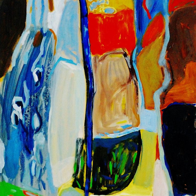The many layers in the painting tell a story, in which the viewer can find their own path.