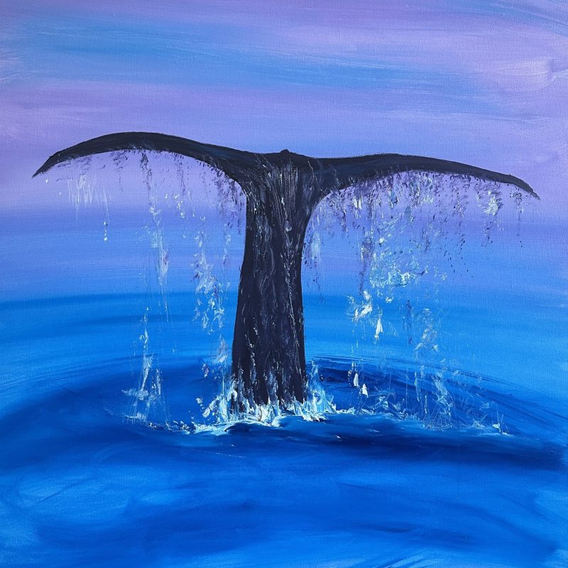 The edges are painted turquoise to complement the painting.