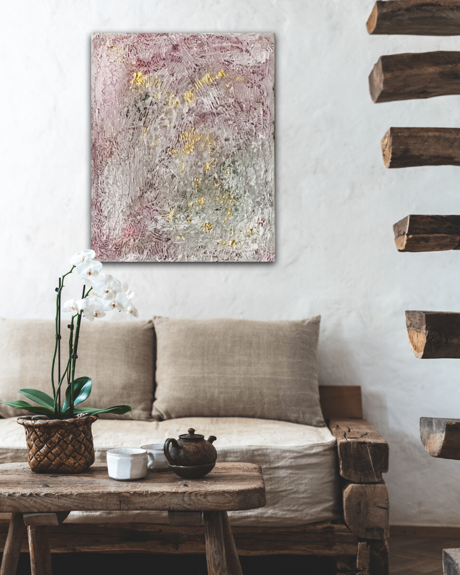Mediums :Acrylic Paint, Texture Medium, Embroidery Thread, Gold Leaf, Gloss Varnish
