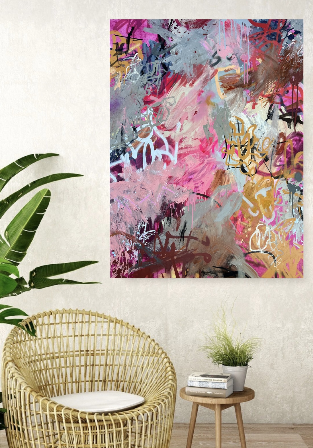 My art is directly influenced by Graffiti in City Laneways, Vintage Billboards and other weathered surfaces & is also inspired by my love of gestural abstraction and my obsession with using spray paint.