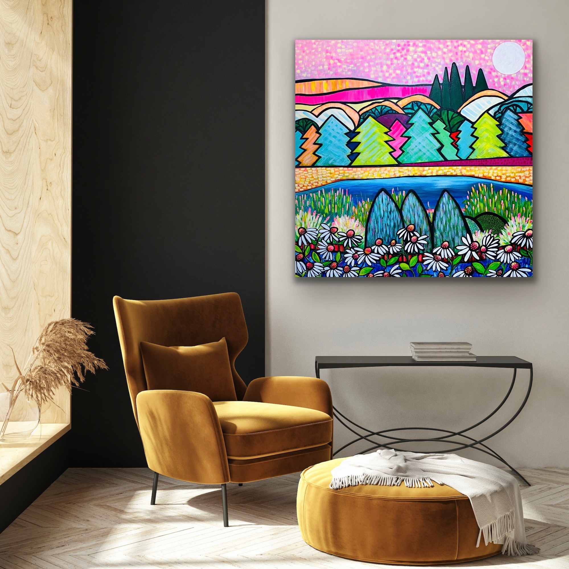 Mystical moonlight and a pink starry sky…..beautiful old world gardens always inspire my original, modern landscapes……and for me, there is something about echinaceas growing wild.