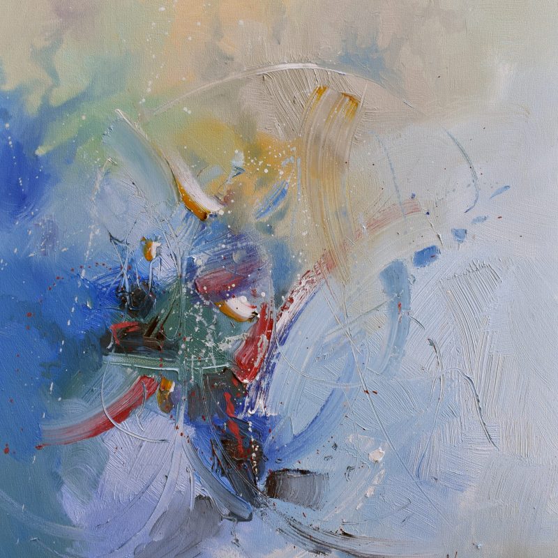 Sides are painted as continuation of the painting. Signed with a certificate of authenticity.