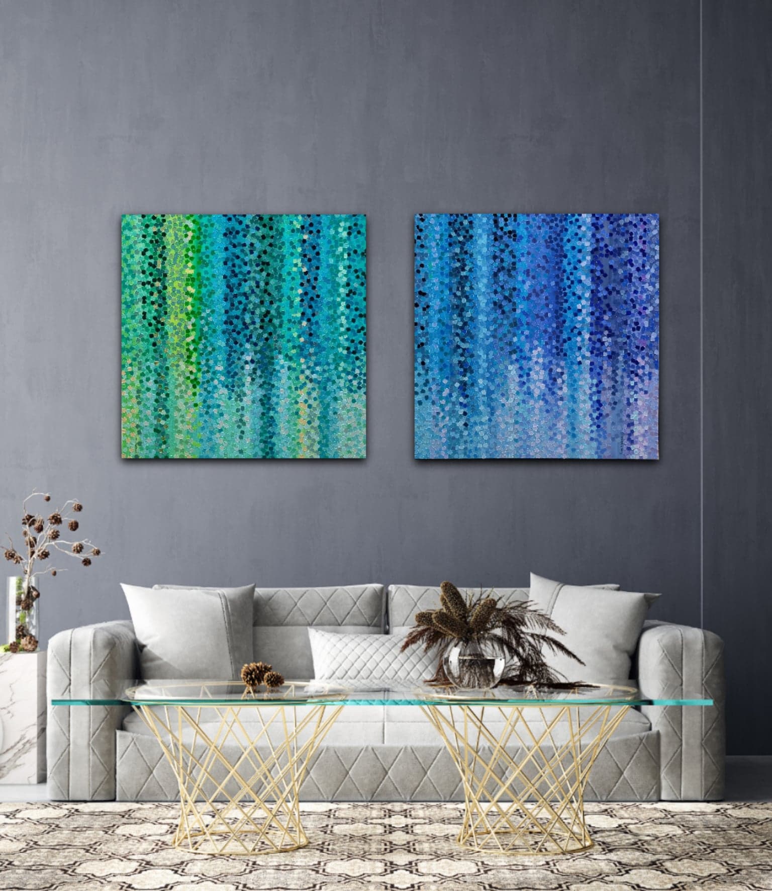 Pixel Party in Green and Blue – Diptych – by Tania FitzGerald