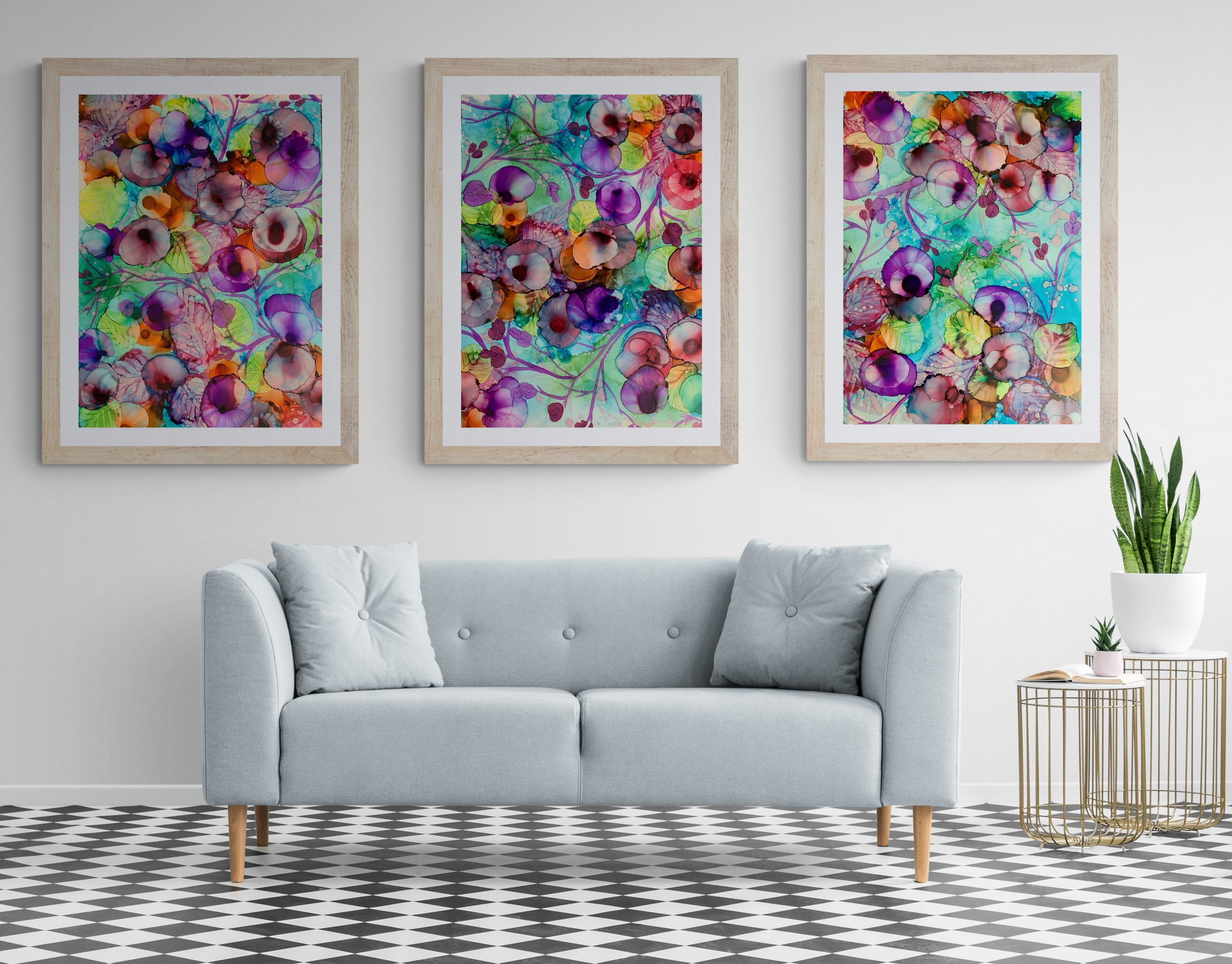 Original triptych 65 cm x 91 cm x 3 Alcohol ink on yupo paper sealed with high grade varnish and UV spray.