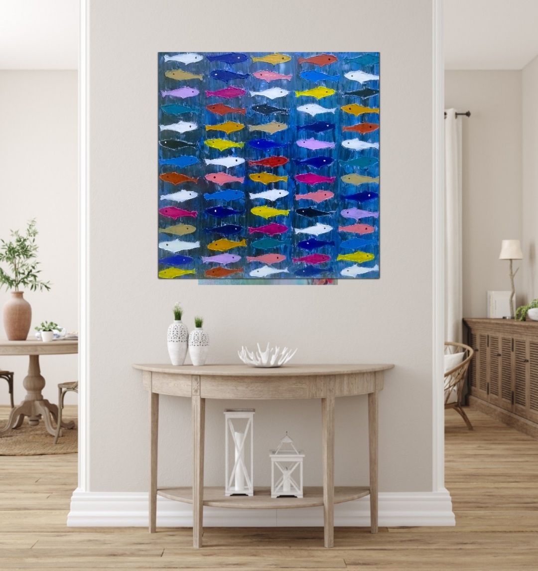 Plenty of Fish by Valeriya Master– abstract mixed Media on stretched canvas, inspired by fish migration.