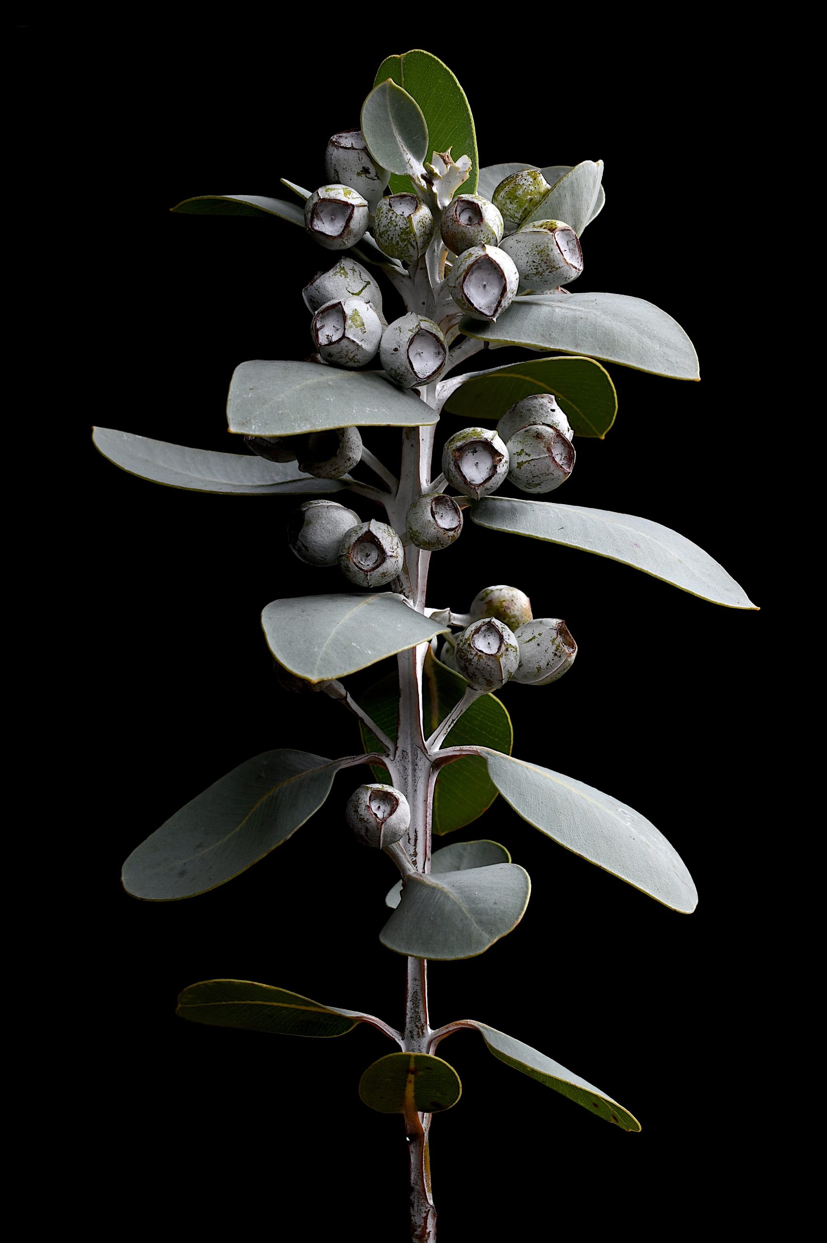 The beautiful silvery-green leaves of Eucalyptus Pleurocarpa with it’s chalky white gum nuts, perfect wall art for your botanical themed decor.