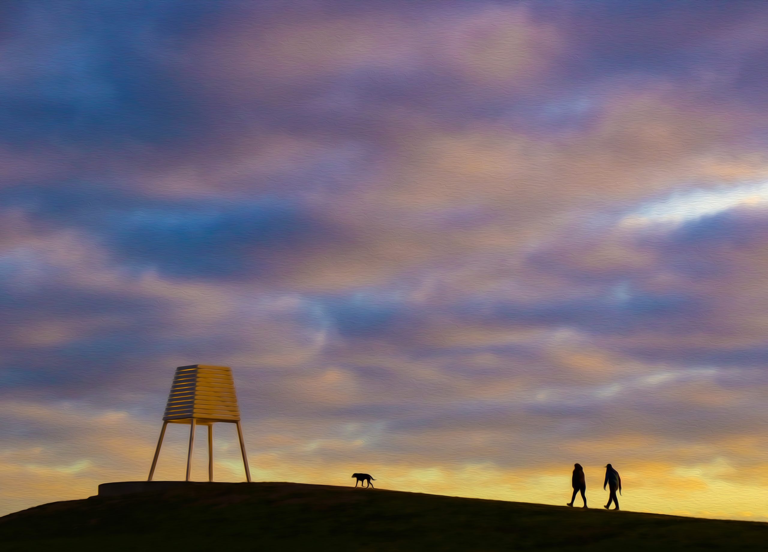 Point Ormond Dawn. Dog walkers at dawn on Point Ormond in Elwood, Melbourne. Photography by Leigh Henningham