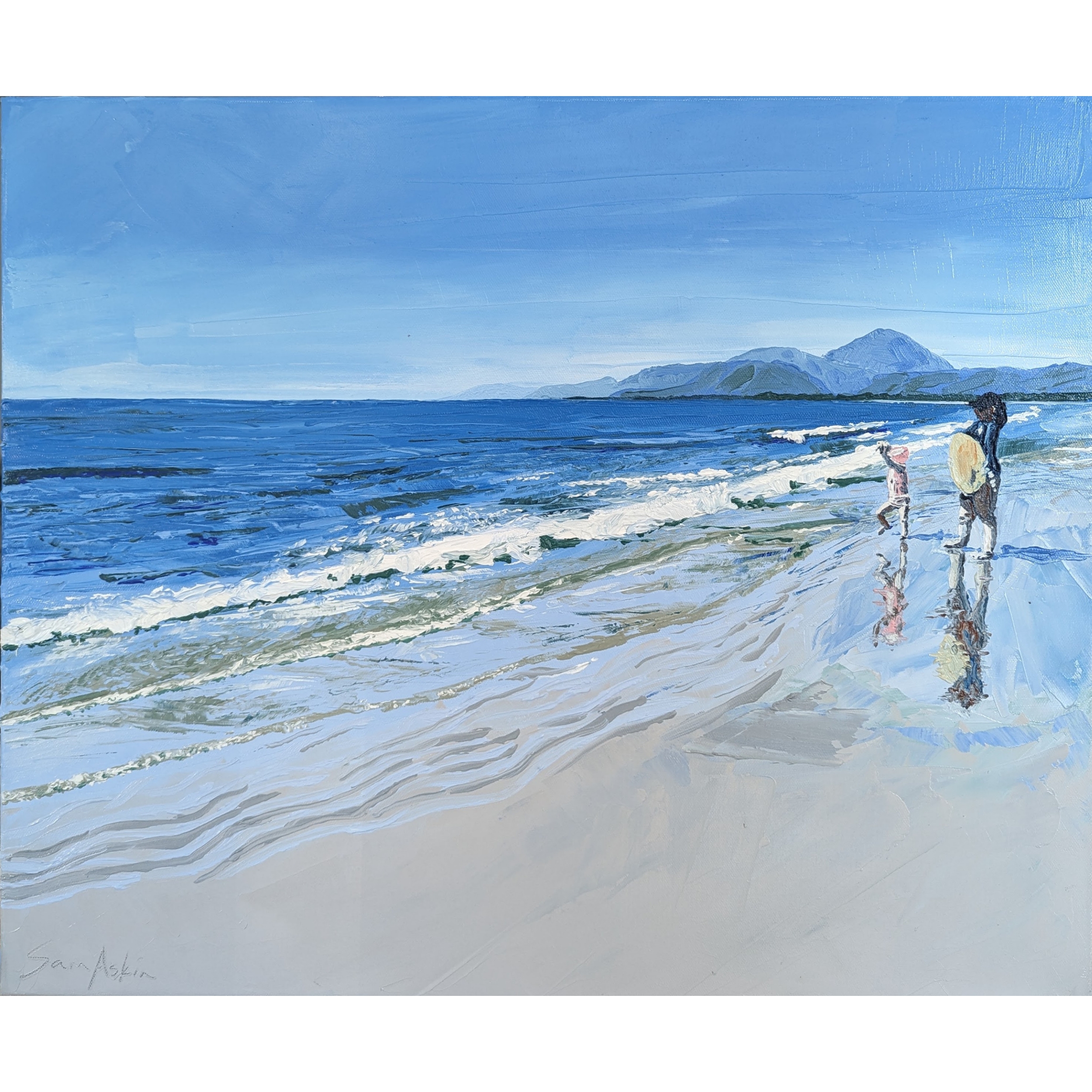 Oh the BLUES! Put yourself in this scene… it’s HOT outside, the sky is pristinely blue, to the point where you can se the colour deepening towards space above. The ocean perfectly reflects the sky in a deep blue and is crystal clear in the shallows. You can see islands in what seem like another world away, they are so far and such is the visibility. The sand grains are so tiny and prefectly uniform in consistency, shimmering as the ocean rolls over them with each small wave. You are hanging out with your family in the breeze on the beach, as that special little girl in your life gets ready to conquer the waves when you launch her skimboard for her and she chases after it through the rippling water at the shoreline. What a holiday to escape to. I feel so lucky to be able to say I surrounded myself with moments like these, and I hope others can find a similar escape in these moments to the ones that I do!