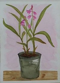 Pot of Lillies by Heather Browne is a watercolour painting on quality 300gsm cold pressed watercolour paper.