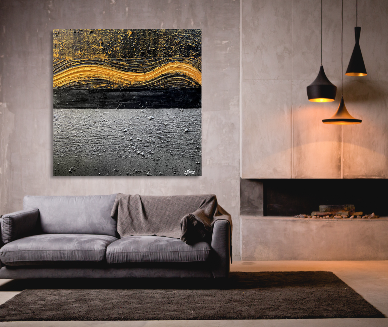 ‘Precious‘ by Mendo Vasilevski – The texture and depth of this piece is Earth and Riches. Abstract Earthy Landscape feeling. An original piece loaded with texture and details. Ready to hang on premium gallery thick edge canvas. Edges are painted to suit. The high gloss finished makes the Black & Gold shine with details.