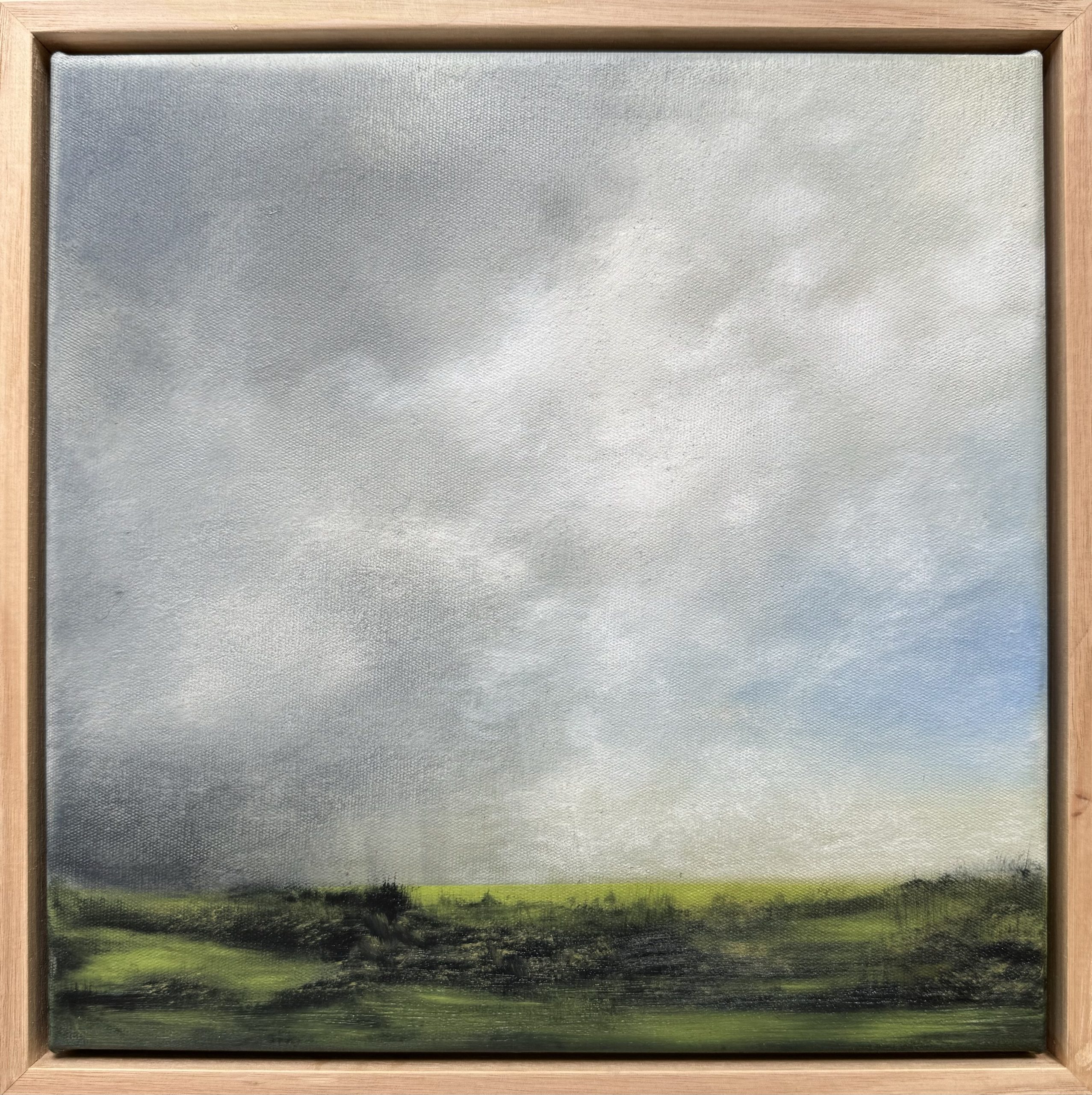 Ready to hang, original oil painting on stretched canvas with Oak floating frame.