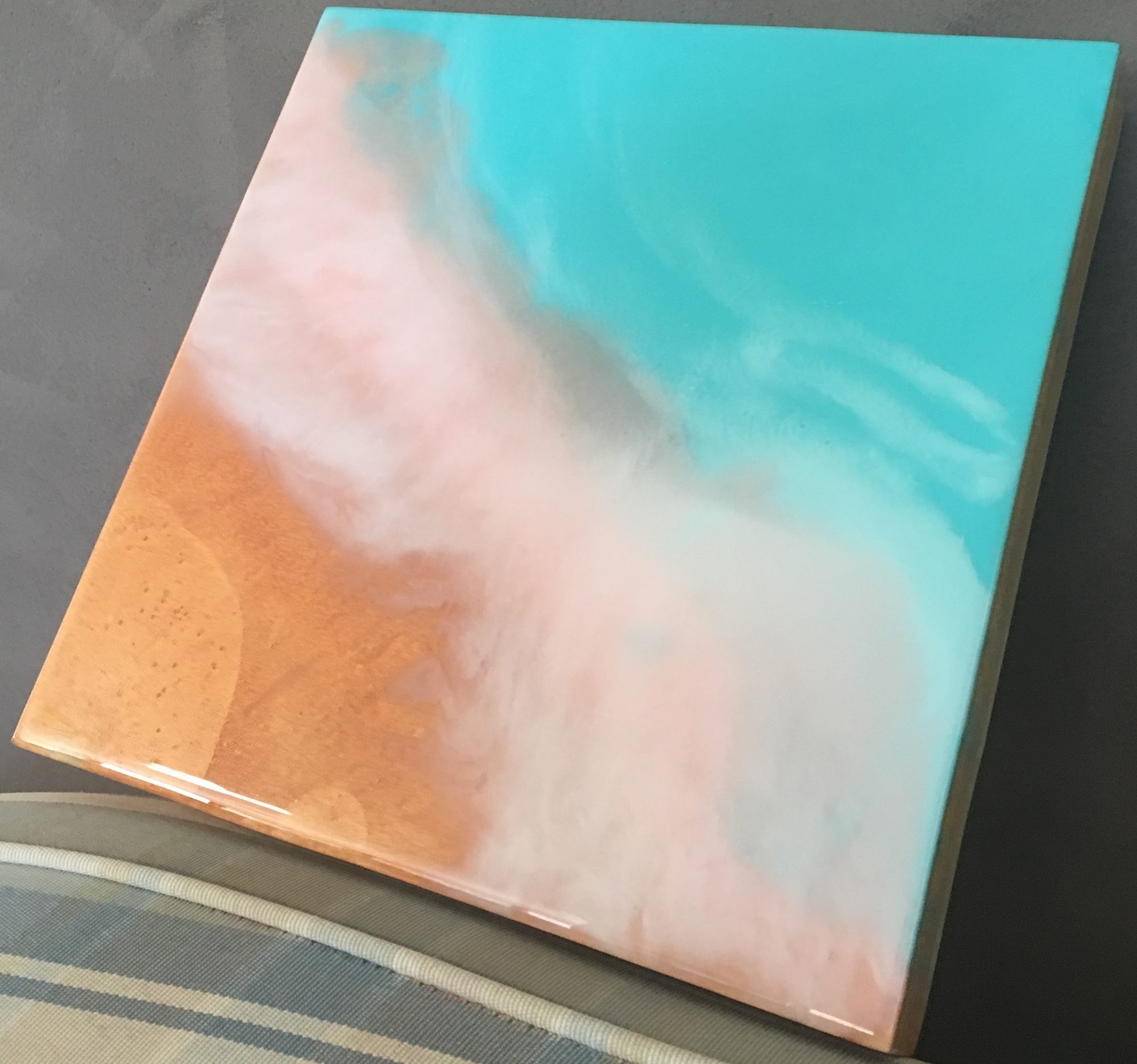 Original artwork. Resin and mixed media pigments on a cradled wooden board. Best viewed in bright light, photos don’t do this piece justice. It looks much better in real life. By using a number of layers, some depth has been achieved.