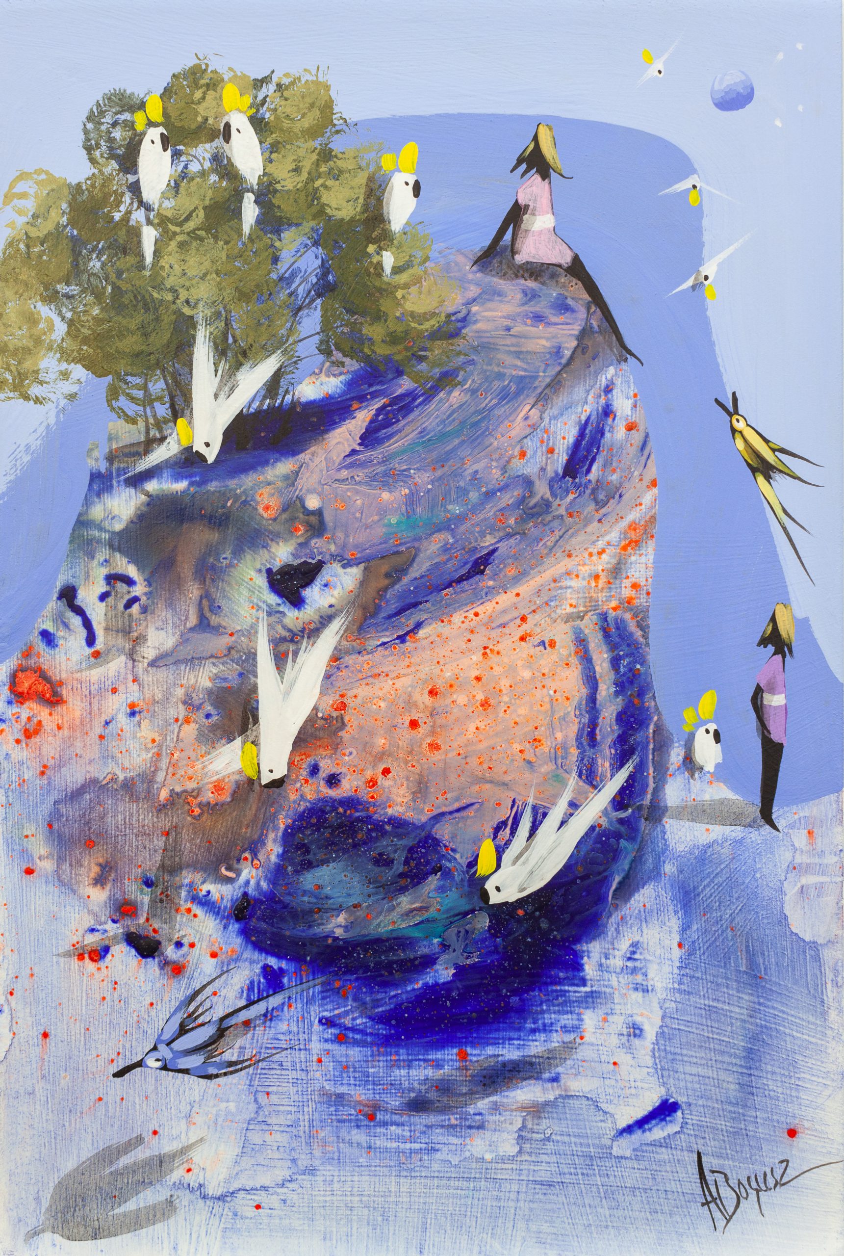 My paintings draw inspiration from a broad range of sources. I’m interested in the mystery of our existence, my family, which includes two children, and the stories that life inevitably throws our way.Â