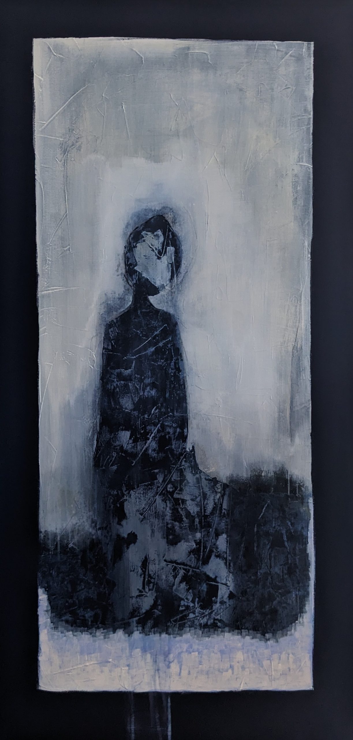 I wanted the figure to resemble someone deep in thought and not necessarily harmonious thought as is depicted by the negative space in and around the figure.