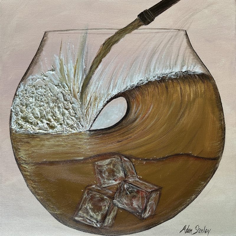 This painting shows golden light breaking through grey clouds, with bold brushstrokes creating movement and depth. It feels like a sunrise or sunset shining through a storm, full of contrast and energy.