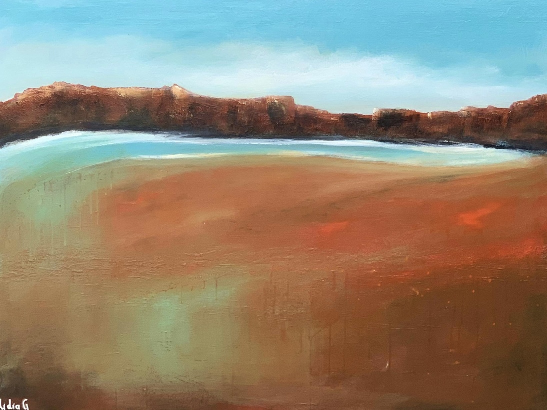 Inspired by the incredible diversity of the Australian landscape from its rugged coastlines, snow-capped mountains and the idiosyncratic landscape of the sandy desert with its sun baked monoliths and rainforests. The edges of the painted are done in Lamp Black and comes with professional wire hanger and a Certificate of Authenticity.