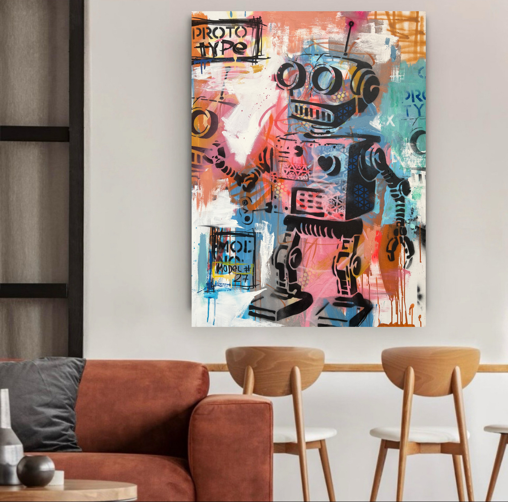 This original Artwork is a continuation of my current series, playfully exploring animation, comic books, cartoons and tech.