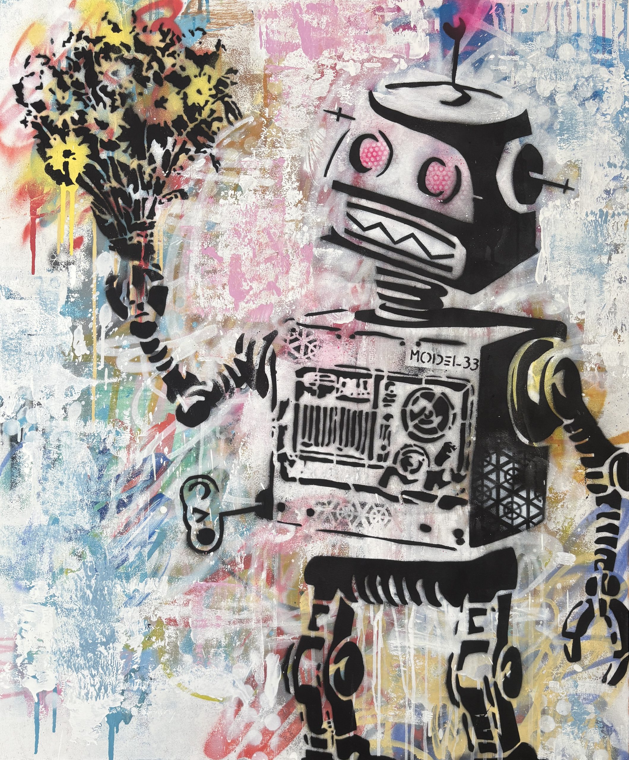This original Artwork is a continuation of my current series, playfully exploring animation, comic books, cartoons and tech.