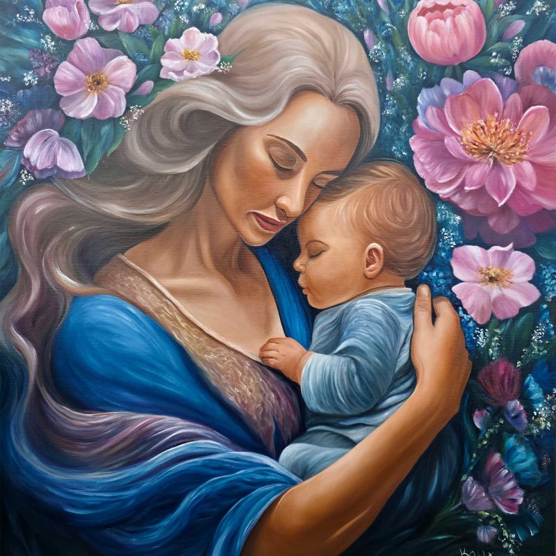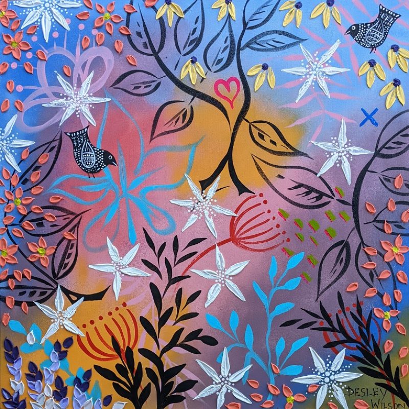 The work is a mixed medium painting and comes on a quality canvas and is painted black around the edges and is ready to hang as is.