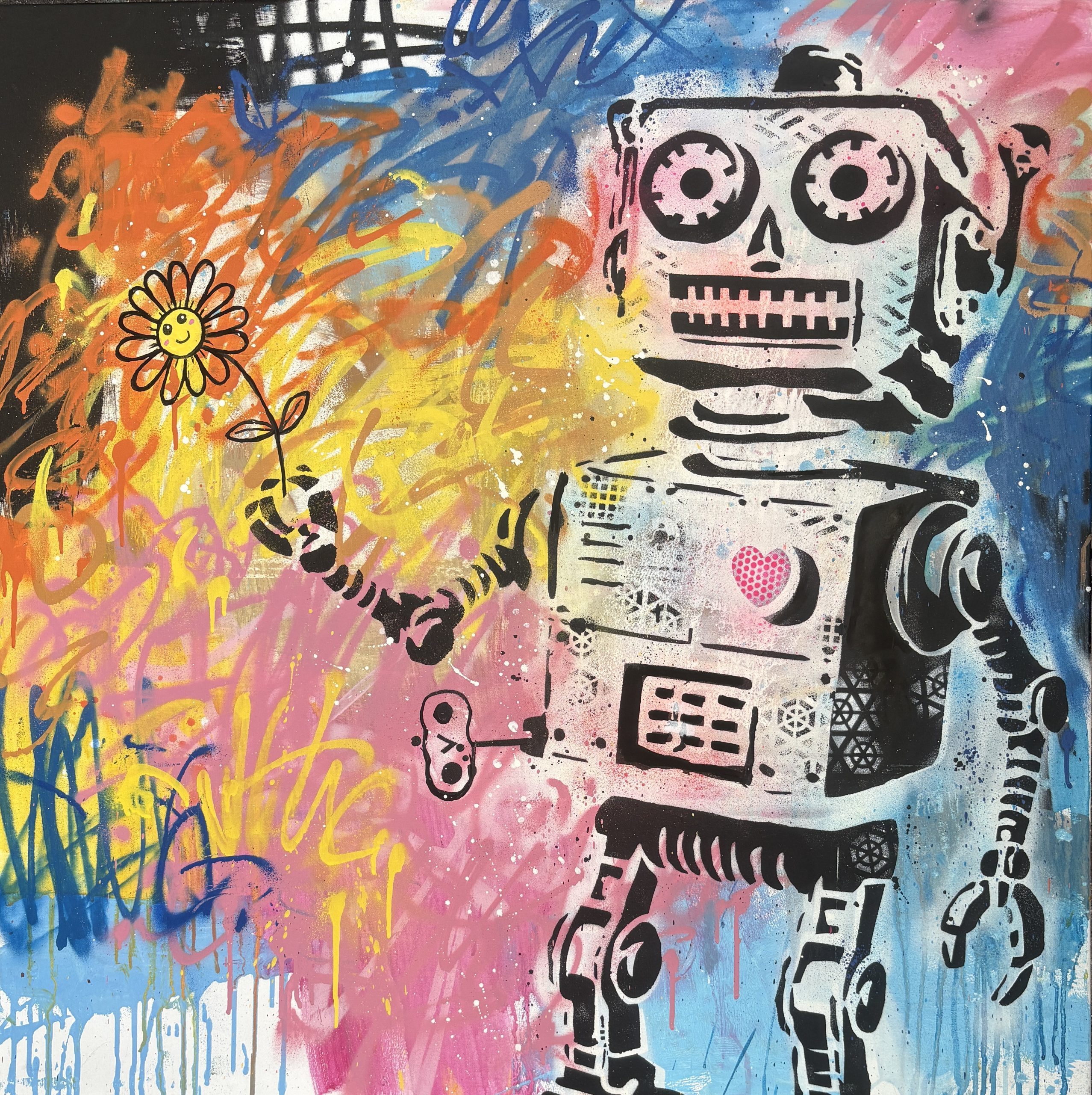 This original Artwork is a continuation of my current series, playfully exploring animation, comic books, cartoons and tech.