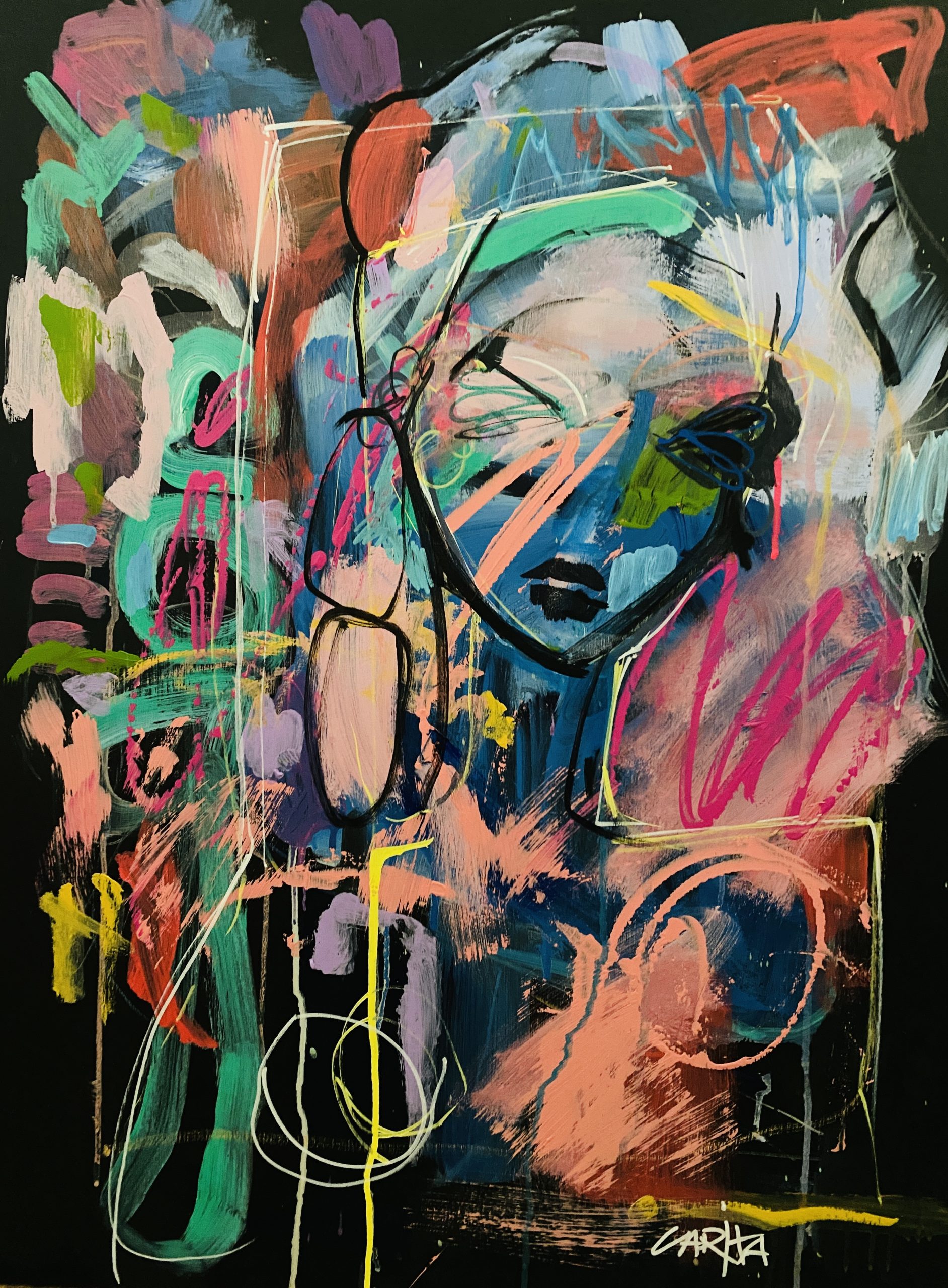 Carita’s highly original artwork attracts many collectors nationally and internationally who are drawn to her unique use of edible colour palettes, intuitive mark making and signature illustrative twist.