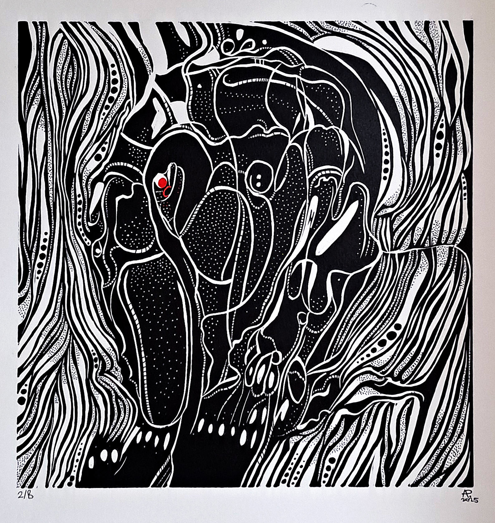 In this work, abstract lines and pulsating forms evoke the mystery of creation. The composition, inspired by ultrasound imagery, reveals the fragile rhythm of existence before birth — where silence and vibration meet.