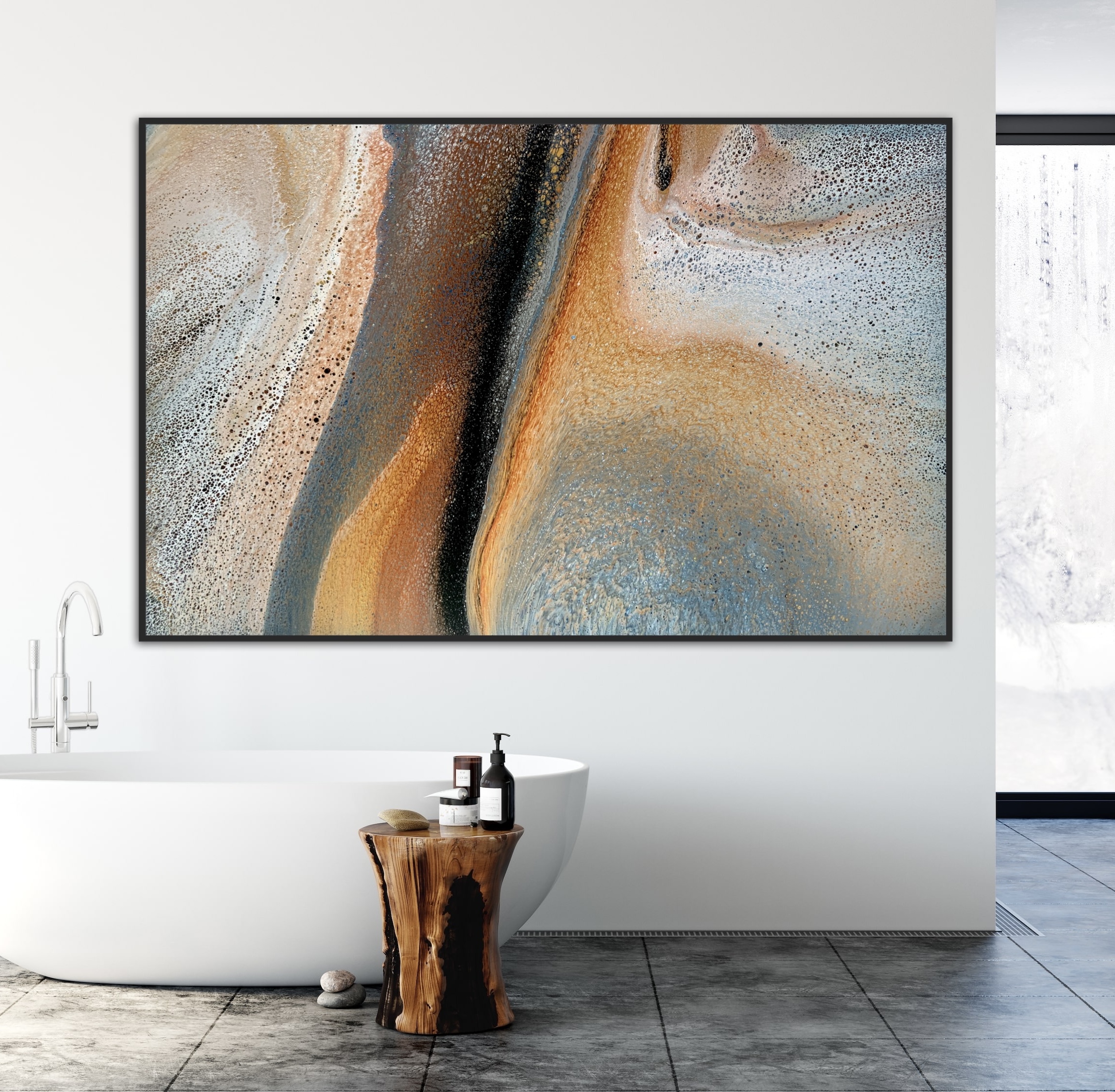 ‘In situ’ photos have been included to help with visualisation of the artwork in your home. In situ photos provided were created using the ArtStage app and may not be perfectly to scale. This being said, every effort has been made to represent the size of the art accurately but please read the dimensions of the artwork to ensure it fits your space perfectly. Where provided, photos of framed art are for illustrative purposes only.