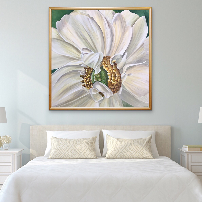 Quality acrylics and inks used giving long lasting rich pigmentation/lustre. Designed on acid free environmentally unbleached cotton duck, triple coated with universal primer, heavy duty stretcher bars were used to reduce warping. Protective Matte Varnish applied. Original art signed by the artist and ready to hang.