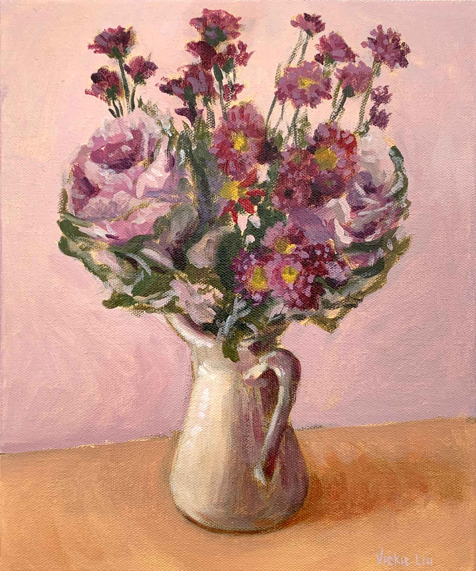 Purple Cabbage and Daisy Bouquet in Jug Study by Vickie Liu