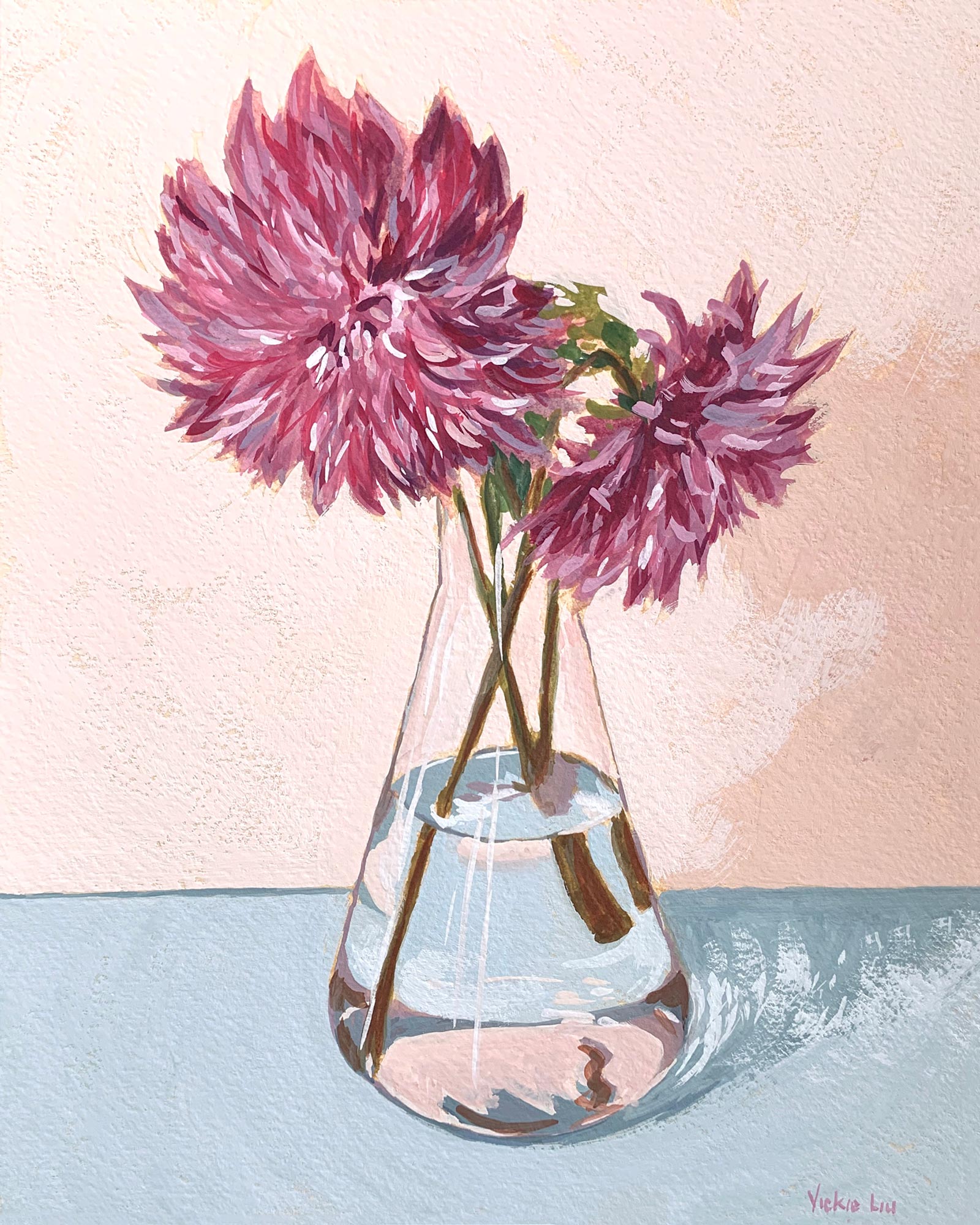 Purple Dahlias in Flask Still Life by Vickie Liu