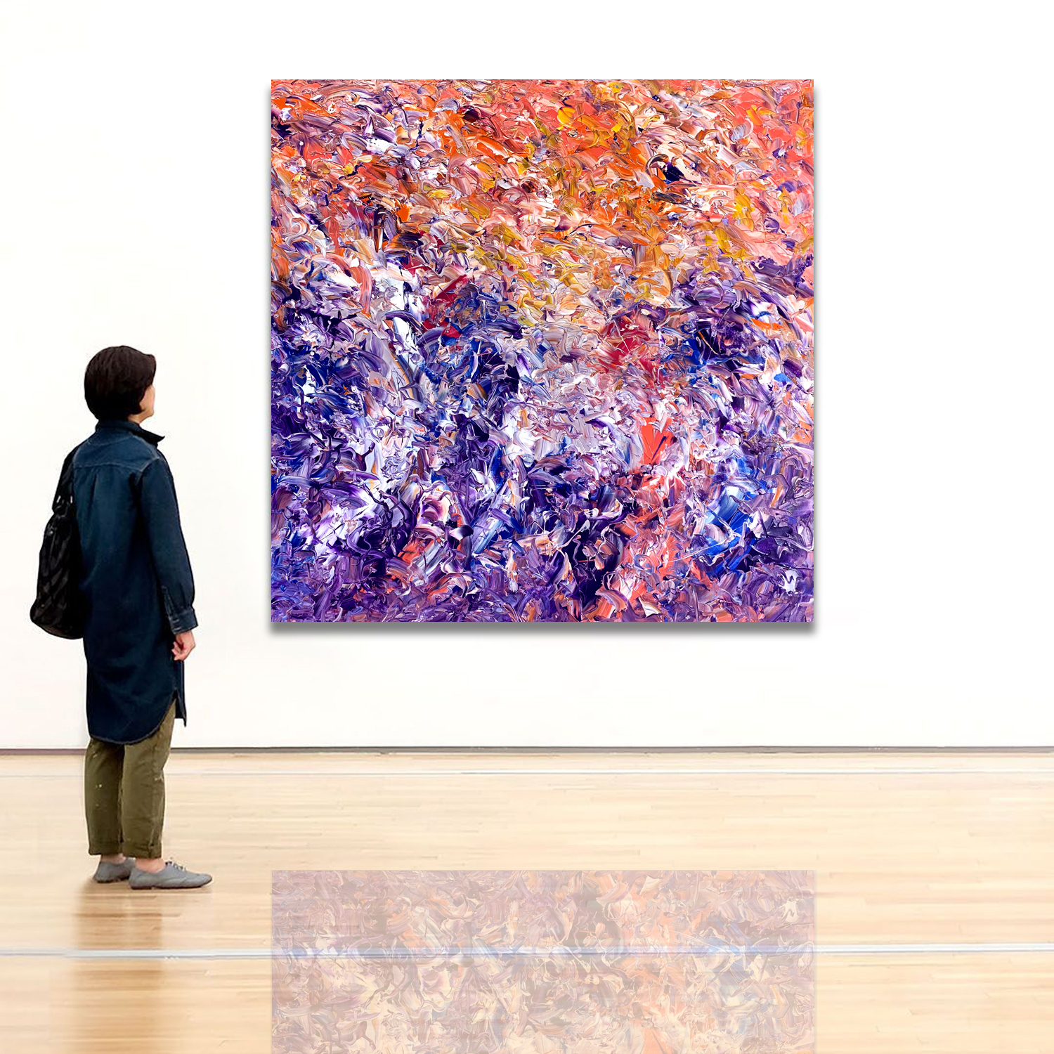 Purple Moving by Estelle Asmodelle – This work explores the idea of colour moving. In particular how I feel about moving colour on canvas. The purple has movement but only against other colours. Painted in the style of abstract expressionism.
