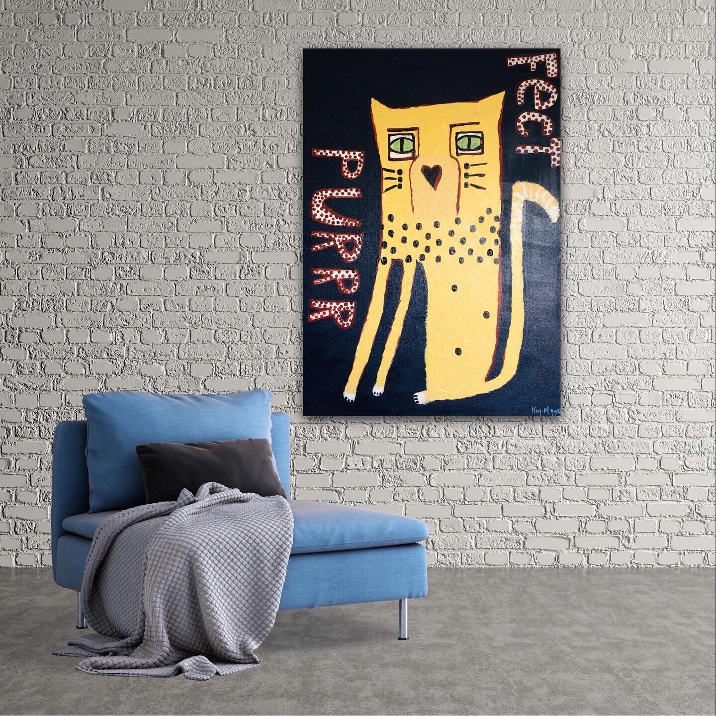 Cat Painting on canvas, stretched and ready to hang.