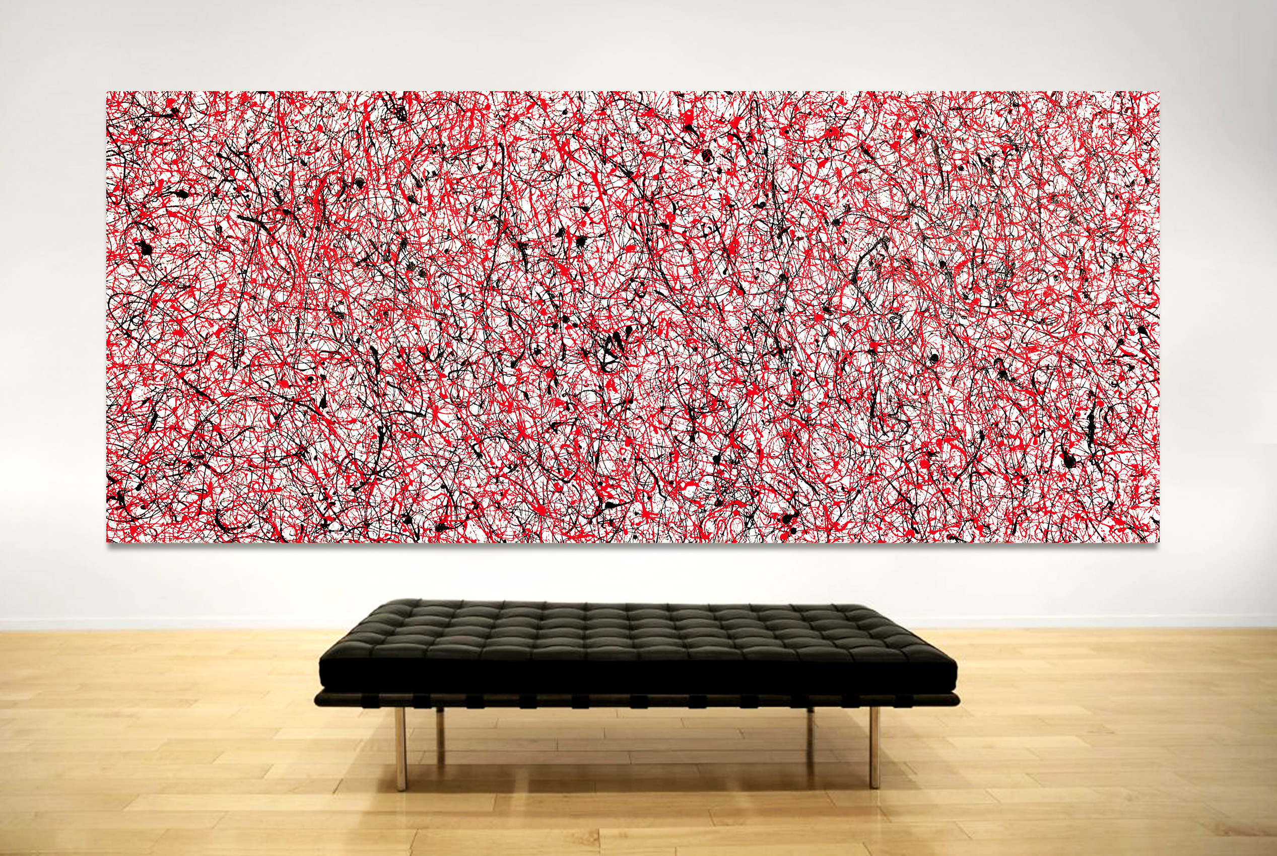 This work is painted on professional-grade canvas and has been sealed with varnish. The canvas is 280 cm in width by 120 cm in height, and the sides are in the same manner as the surface.