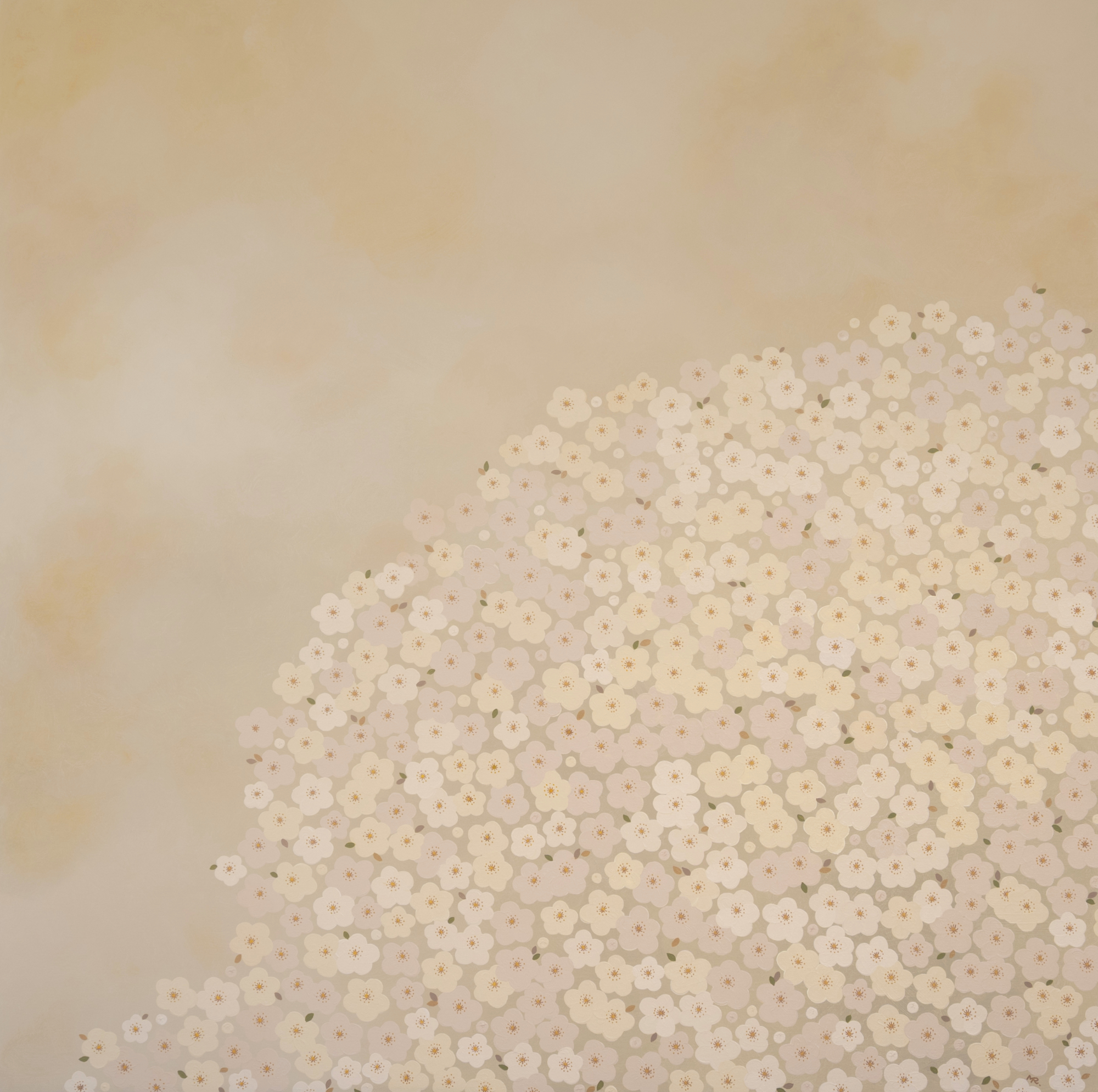 Quiet Bloom is a contemporary minimalist abstract artwork inspired by the fleeting softness of flowers, interpreted through gentle gestures, subtle texture and soft colour fields.