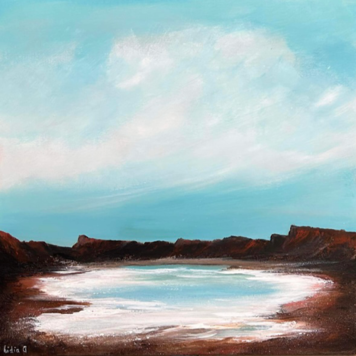 Inspired by the incredible diversity of the Australian landscape from its rugged coastlines, snow-capped mountains and the idiosyncratic landscape of the sandy desert with its sun baked monoliths and rainforests. The edges of the painting are finished in Lamp black and comes with professional wire hanger and a Certificate of Authenticity.