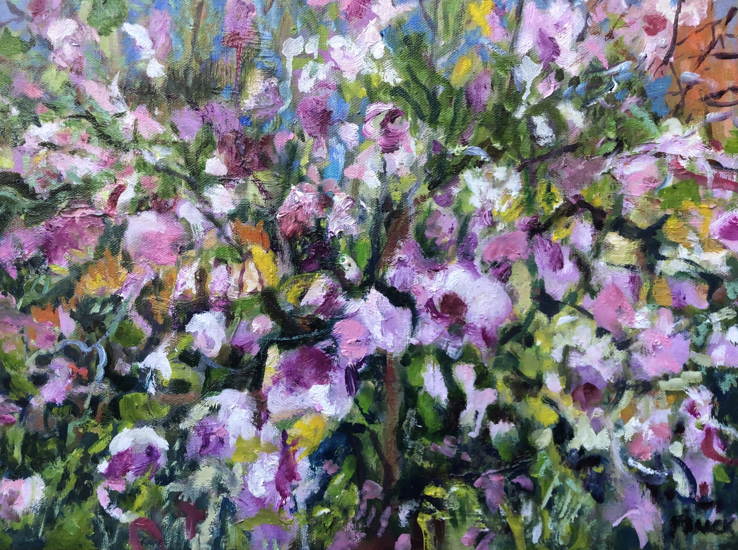 My painting of quince blossom was inspired by painting en plein air at Blackwood Forest Recreation Park.