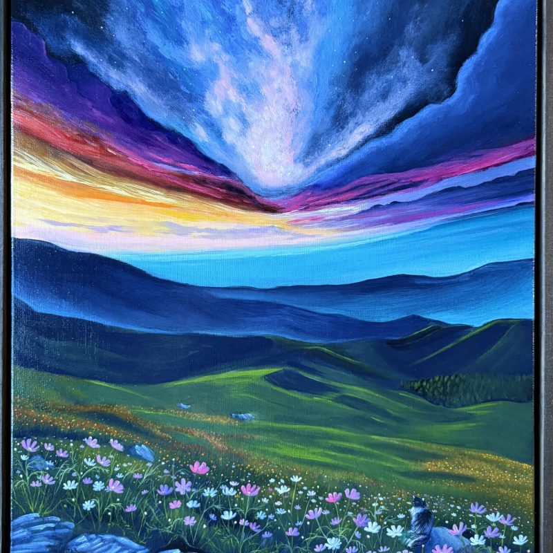 I created a wacky multi layered colourful and textured intuitive base followed by using negative space painting technique in soft white to keep the look and feel light and fresh.
